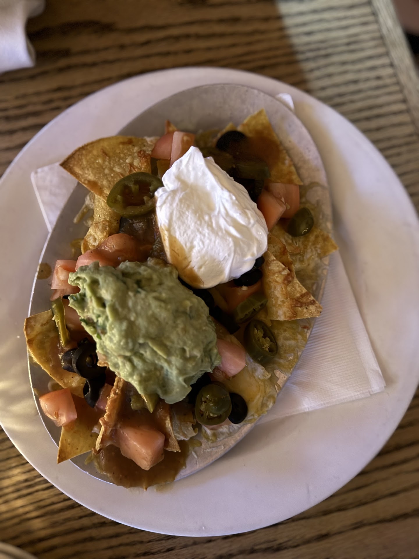 Chicken nachos, piled HIGH with guacamole, sour cream over a mound of nacho chips and cubed chicken pieces. The whole dish was clearly assembled then tossed into the oven so that all the cheese would melt nicely over the chips, it was literally amazing! Not sure why it was so good, but maybe it was the quantity of food, cheese, and guac or maybe I was just so surprised by the dish at this random bar.
