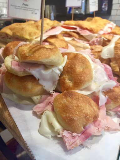I'm torn between three and four stars because on one hand, I feel like they totally jipped us on the pizza margherita foccacia, but on the other hand, their plain foccacia is totally worth it and really good. The pizza margherita caught my eye, and I saw a sign that said $2.90, so I thought why not? It's the perfect mid-afternoon snack. They were all already pre-cut, so one would assume that it would come out to $2.90, right? Wrong. I'm no mathemetician, but something just didn't add up if we paid $8 something for 2 plain foccacia squares (at $1.60 each) and one margherita. It turns out the guy counted the margherita as "two squares" so we actually ended up paying $5.80 a "square". It's just too bad we realized after we left the shop and already ate half the pizza. If I had known, I would have just gotten a slice of Benny Tudino's. But back to the plain foccacia. The two squares that we bought were enough to make a burger for two people for dinner one night, and two Italian sammies the next afternoon. I liked that it wasn't drenching in oil. That or maybe the paper bag soaked most of it up.