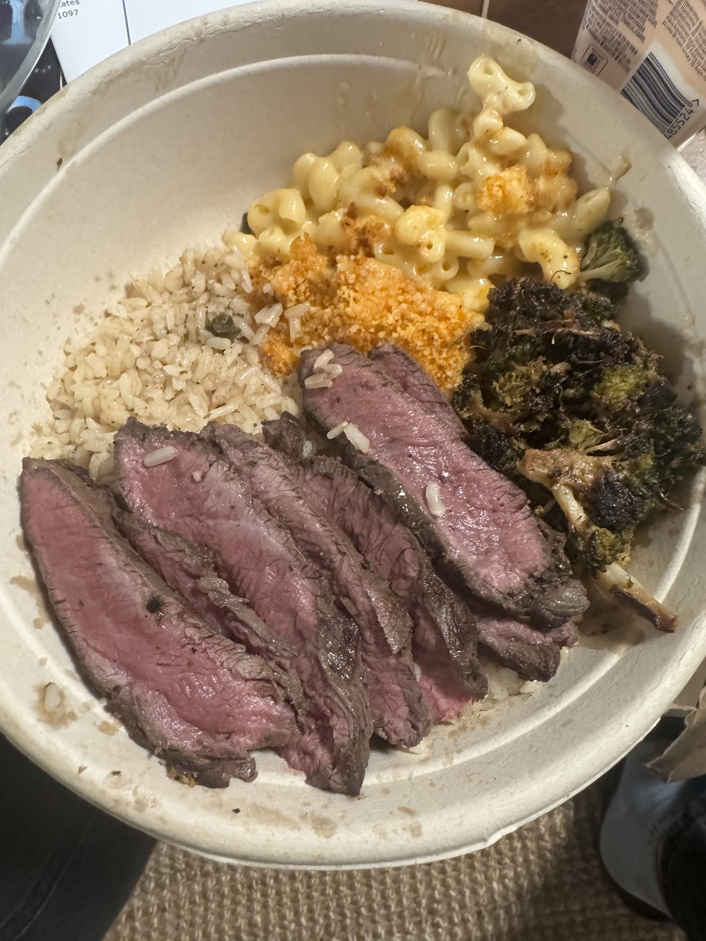 The "Chef's Plate" is a particular favorite, allowing a personalized dining experience where you can create a plate based on your preferences. Starting with a quinoa or rice base, you then add either 3 sides or two sides and a protein. The seasonal sides, including broccoli, squash, sweet potato, Mac and cheese, Brussels sprouts, and cauliflower, are always flavorful and cooked to perfection. The proteins, ranging from roasted chicken, steak, salmon, or tofu, are equally appealing.