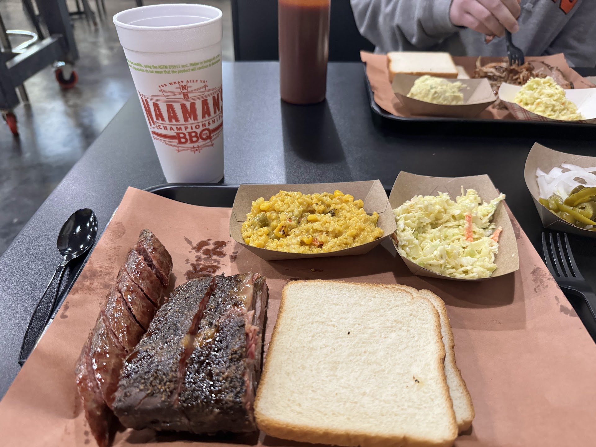 I first ate at Naamanâs in Texarkana, Texas a few years back. It was good then but the thing they have going on in Hochatown is next level. The atmosphere and decor at the Hochatown location matches so many of the cabin hereâŚlight wood plank walls, rustic seating and beautiful views. They also have a great artificial turf area outside for kids of all ages to run around and burn some energy. But I digress. The reason you come to Naamanâs is the BBQ. And it is some kind of good.
