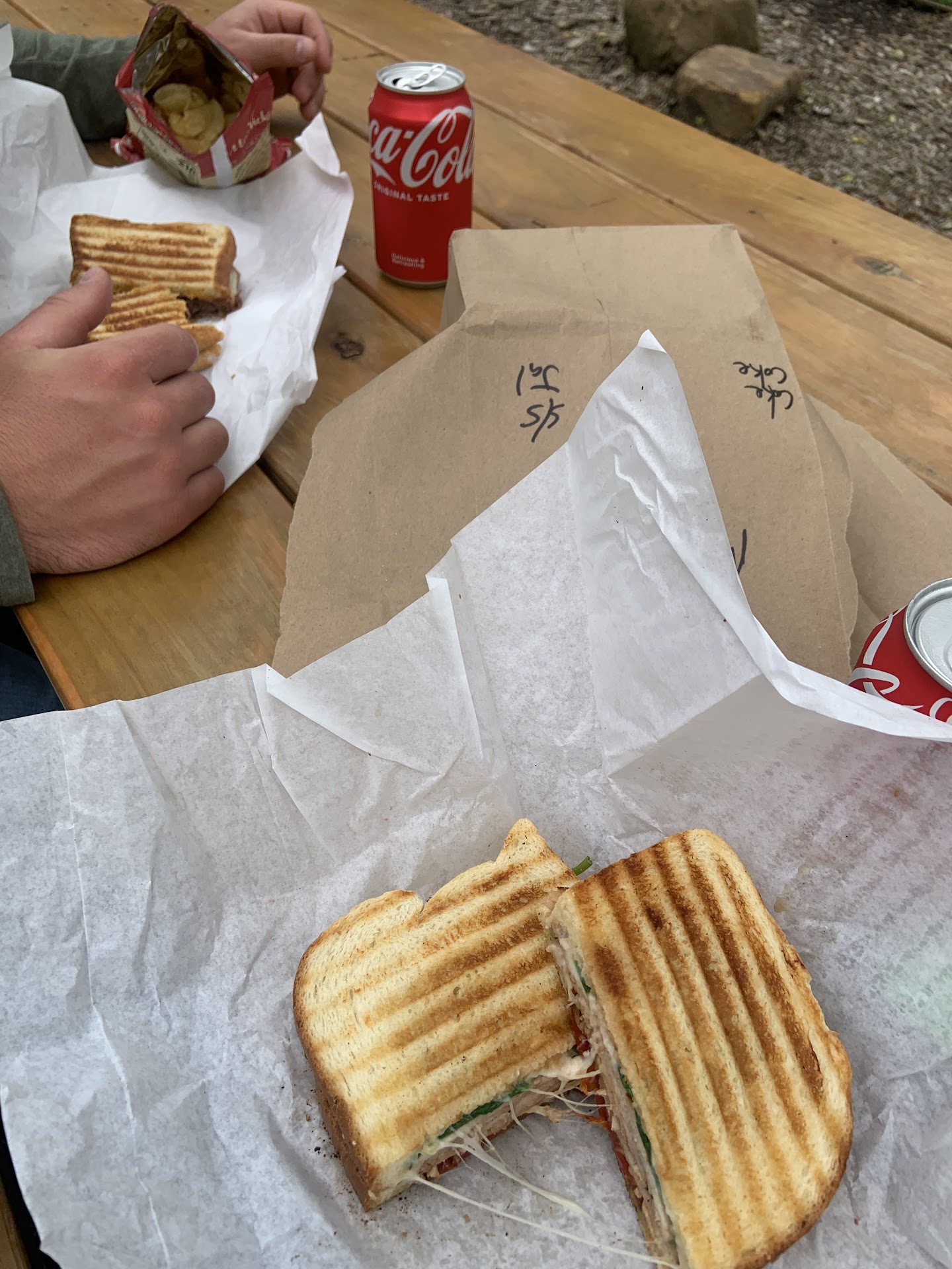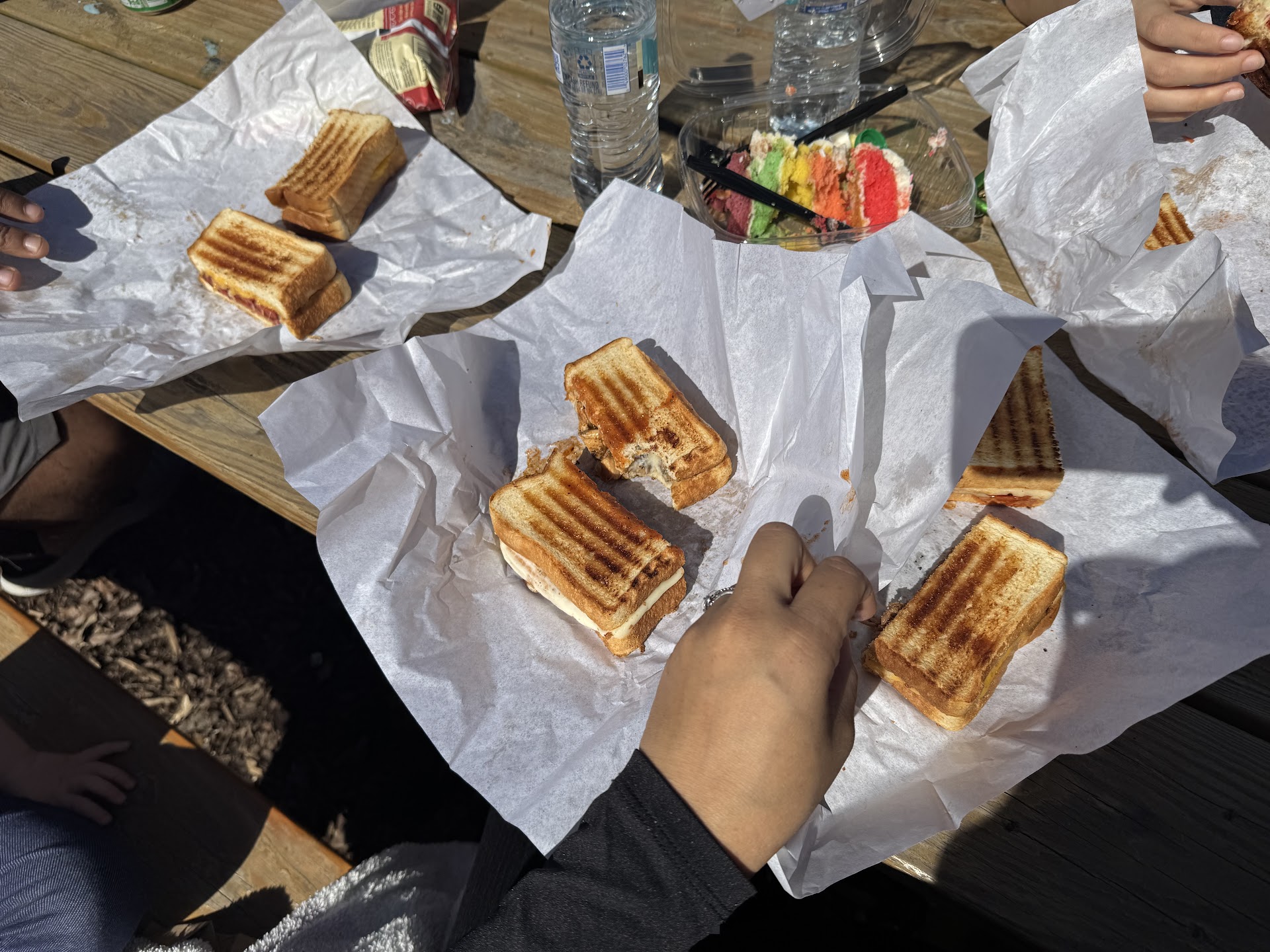I loved the spot because while we waited there are some other fun shops you can enjoy, like a candy and ice cream store called Hey Sugar, and there is turf that the girls were able to do cartwheels and just run around on. Because you're outside, you can bring your dog which was also a nice touch and everyone was very friendly. Anything can be made without cheese so if you're not a fan of melted cheese, like me, still stop by and enjoy an amazing sandwich. They have chips and drink to round out the menu which, in my opinion, provides a little something...