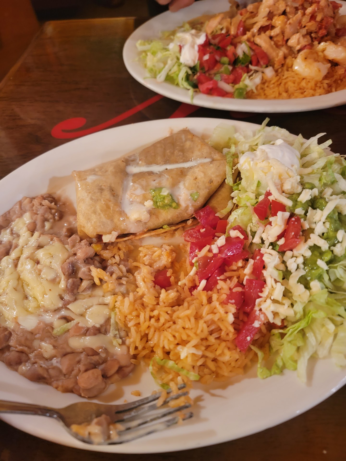 Our server arrived and brought chips with salsa; we inquired what Was her recommendation??? I ordered an Arnold Palmer(unsweetened tea & lemonade), hubby ordered a PiB. Now I’m not knocking immigrants because I am and proud to be a Jamaican 🇯🇲 .. my server flipped over my menu and pointed. Ok I thought strange but I looked and I saw the enchiladas - I thought yummy 😋 I asked for 2 chicken and 2 beef instead of (chicken, beef, cheese & beans). My hubby ordered the same thing but asked for the variety. I’ll get back to Why I said I have nothing against immigrants. Our meal arrived and we immediately looked at each other with a puzzled look. The plates were hot and the presentation was great!