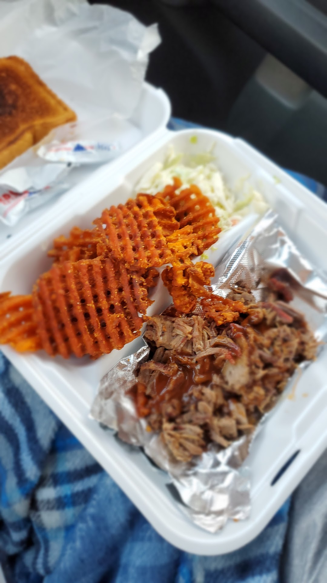 Three meals $76.00 served on single layered Styrofoam plates. Server was in LaLa land the entire time we were there. Although she was having to take care of seven or eight people at a time while another girl sat on her chair behind the counter doing God knows what, but it sure wasn’t helping the waitress. The appetizers were a joke. We ordered corn nuggets and I swear they went to ingles grocery store across the street to get them out the freezer section. I ordered the three meat plate, which I asked for two orders of there fall of the bone ribs and shredded brisket. Well the shredded brisket was honestly pulled pork with a monstrosity of horrid bbq sauce that drowned the meat you couldn’t even tell if the meat was grilled smoked or cooked in a croc pot. The ribs where cooked but God knows where and they definitely were not “fall of the bone”.My lady ordered the catfish fillet and she said it was decent but a little fishy and her bbq baked beans had the same horrid bbq sauce in them. They two were drowning in the horrid sauce. Her son ordered the Tuesday special which is half of a bbq chicken. We found out why it is the Tuesday special because it honesty was some sort of left overs from a previous cooking date and re-warmed in a water based pan in the oven to rehydrate the overcooked chicken that was once again drowned in this horrid overly sweet red sauce they called bbq. I don’t normally write reviews or complain but honestly they need a serious revamp of their cooking skills or habits and training on the over use of the same sauce on EVERYTHING THEY COOK!!!! Better luck to y’all in the future, but please go up to the next exit to eat or go to the Loves gas station across the street and get a better...