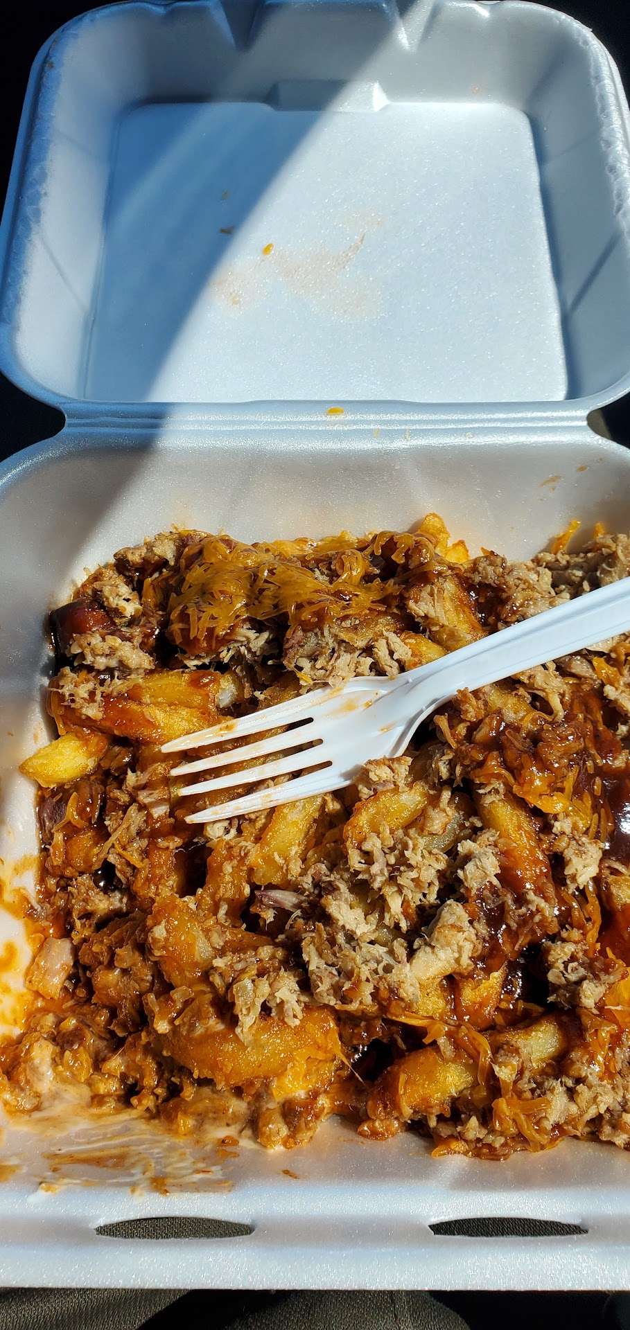 Read moreWe got 3lbs of meat loaded bbq fries and a salad and everyone enjoyed every bit of it! The meat was nice and smoky and juicy, the loaded fries were crispy and delicious and the bbq sauce is really good smoky and tangy just right, the chicken tenders were nice and crispy, oh and we got mozz sticks and some corn nuggets everything we tried was 10/10 I highly recommend you try the loaded bbq fries and the...