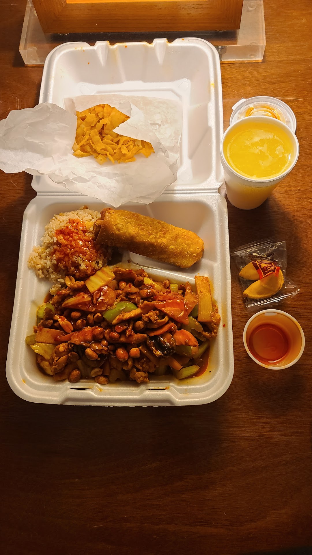 I felt like I was eating cheap prepackaged wholesale bulk food items from U.S. Foods or Sysco. The brown rice was disgusting and the Kung Pao Chicken has to be tolerated. It would have gone in the trash but I couldnāt toss $15 bucks away being back in my hotel room. The egg roll was a microwave disaster and egg drop soup should have been dropped in the trash too. I didnāt finish my meal at all.