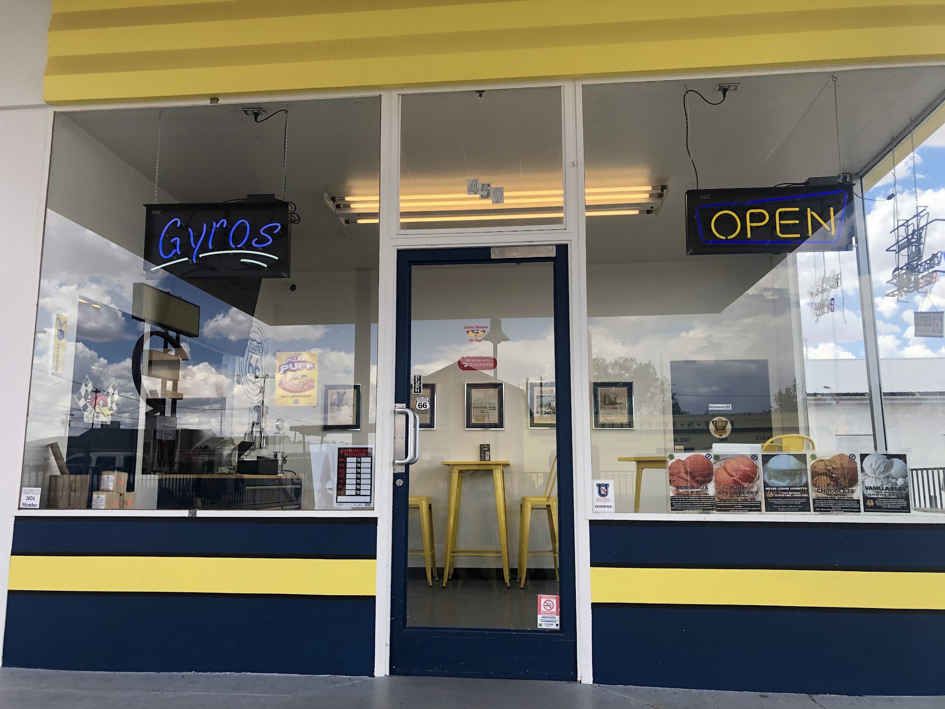 Remember your early life adventures, experiences, etc? Seriously, though, do you? While we may remember a lot, what we are doing now probably isn't anything close to what we thought we would be doing when we were younger. Aaron is no exception. He found his way to Holbrook, Arizona from Chicago area by way of many endeavors. Military? Yes. Elbow grease and busted knuckles? Yes. Sweat & Tears? Of course. Aaron, however, found a passion during this time. Having worked in and around food establishments he learned a great deal. Techniques. Flavor profiles. Most immortality though a dream. Colonel Mustard Hot Dogs is that dream. Is it exactly as he had imagined? Doesn't matter. What matters is that when you order a dog here you'll quickly learn why Aaron didn't give up on his dream. He wanted to share with us and that he has! The meat that he so passionately prepares for his sandwiches speaks for itself. Whether it is the Cubano, Gyro, Italian beef, or other. Traveling through we made a stop to stretch our legs and fuel our bodies. While we were there we learned about this once Vintage Service Station, now hot dog eatery and how it came to be. Now a white building with yellow and red (mustard & ketchup) serving up fuel of a different kind. We watched folks come and go (with food in belly or hand), many of which were repeat patrons. Once closed for the days business, others continued to arrive hoping for a bite. Some that are regulars looking to get their favorite Ruben Sandwich and having to leave disappointed knowing they missed out today only to have to return another day. While the atmosphere is unique and you find yourself sitting at yellow tables on an open patio next to a vintage fuel pump (non-operational), you can't dismiss the overall cleanliness and service. The staff is very kind. They will answer your questions, complete your order, and make sure you are taken care of. I'm a sucker and rarely pass an opportunity for a Chicago dog, especially with an actual Vienna beef dog. Yes, bright green relish and sport peppers!! Light crispy fries, check! The Cubano meat is spot on and lays not forget the crisp pickle!