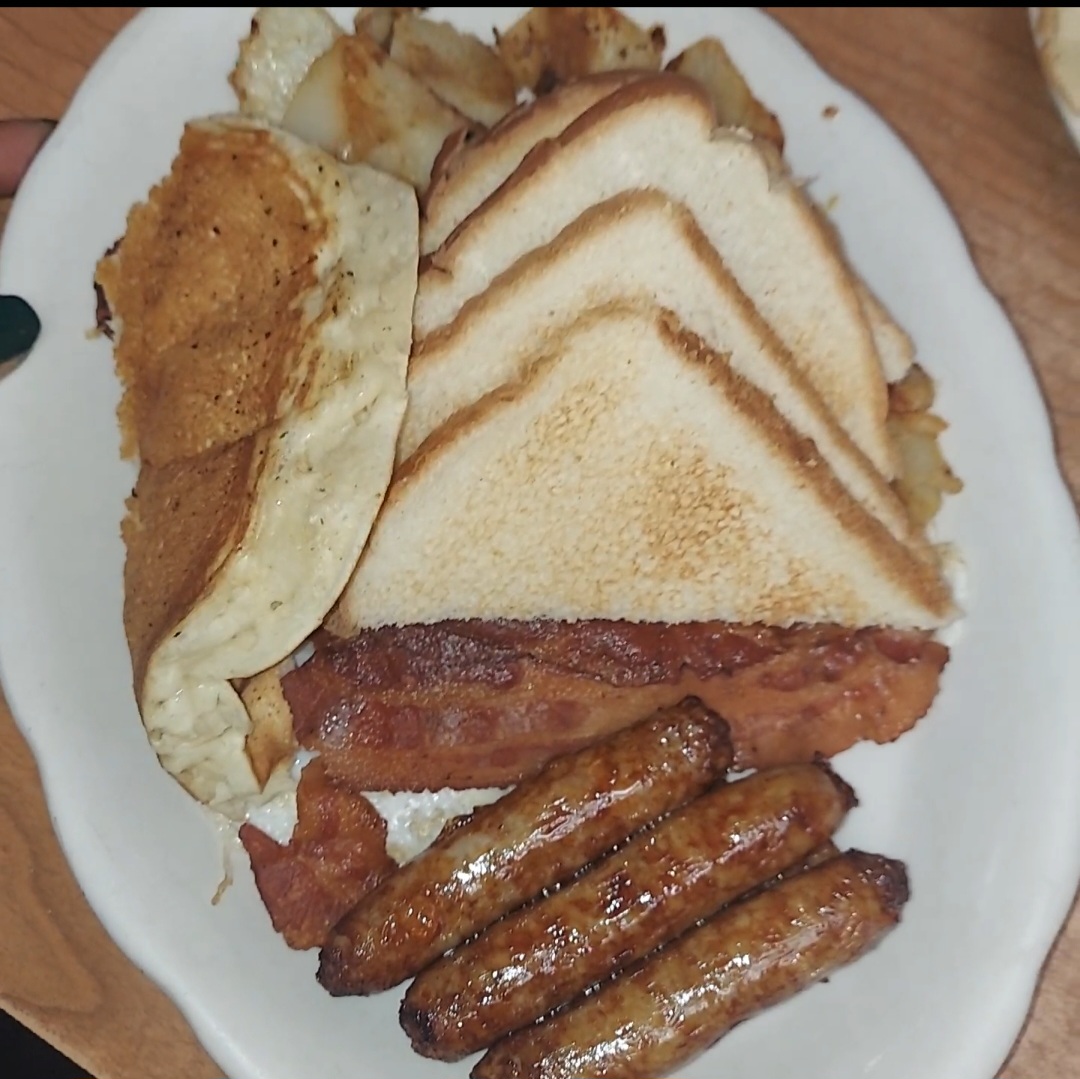 The food was excellent. I had the "Fried Dough French Toast" with ham and home fries, and it was all very tasty. My nephew enjoyed his steak omelet as well.