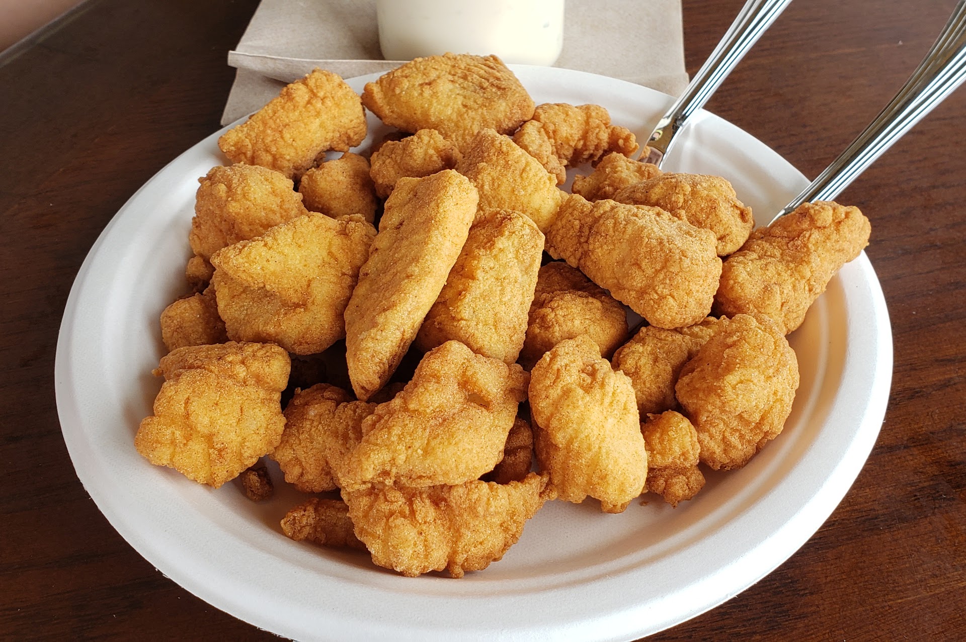 Finally, my Calabash shrimp was decent. The rice pilaf and coleslaw sides weren’t great, but the shrimp was perfectly cooked and tasty.