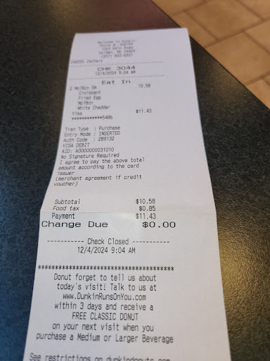 Read moreGreat staff and fresh Doughnuts every day and the coffee is always (& I do mean always! ) the coffee is fresh, hot and is ready into my hand so quickly. Best Dunkin ever, I almost forgot to mention that this location is or was for that matter the only place I know of using the Best cream for their whoopy pie Doughnuts in the place of the buttercream which I think is an amazing idea and I only wish they still did this because the buttercream is absolutely way to sweet for my liking and the same goes with my family, they all prefer the best cream just because.... well it just tastes better lol. Other than that it's definitely a 5⭐️ location for their service and there amazing attitude and nots let forget this is a clean...