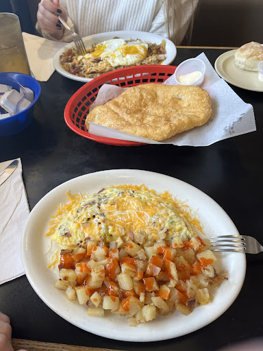 Read moreI went to brunch with my husband and a friend today. I had the Greek Omelette which came with home-style potatoes, fried red tomatoes, and toast or a biscuit. I chose the biscuit. We all split a scone, and got three coffees. The three of us ate for about 40.00 before tip.