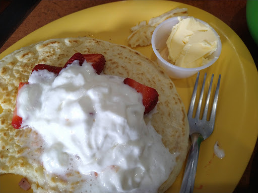 The Greek Omelette contains green peppers and onions and is topped with a far too generous spoonful of feta cheese. The homestyle hash had some crunchy browned potatoes scattered through the rest, but they weren't flavorful. The overwhelming feta and bland potatoes were my only problems though. Everything else was fantastic. The fried red tomatoes were absolutely delicious, and the biscuit was obviously homemade, flaky and still hot from the oven. I'm pretty sure I'm gonna try their gravy and biscuits the next time I go, and I don't do gravy and biscuits. That's how good that biscuit was. The scone was darned tasty too, perfect with butter and honey.