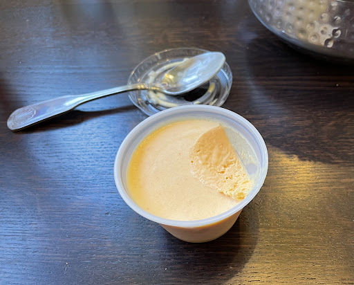 The complimentary mango mousse was very good. I think they gave us this because I told them ny entree was way too spicy; we didn't order it. So that was a nice gesture.