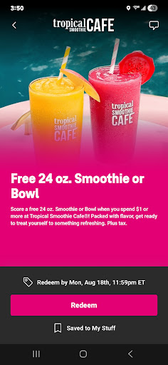 Usually don’t post reviews unless I feel like I need to. The smoothie that I got was undrinkable. Not because it tasted bad, but because it wasn’t blended well and there were ice chunks throughout the entire thing. The little that I could get through the straw I had to chew the chunks of ice. I struggled through about half of the smoothie before I just gave up and threw it away, which is hard when you’re paying $9 for a smoothie. I’ve always loved tropicals smoothies at other locations, but this one was a miss for me. The 2 stars are for the chicken bacon ranch flatbread. It was...