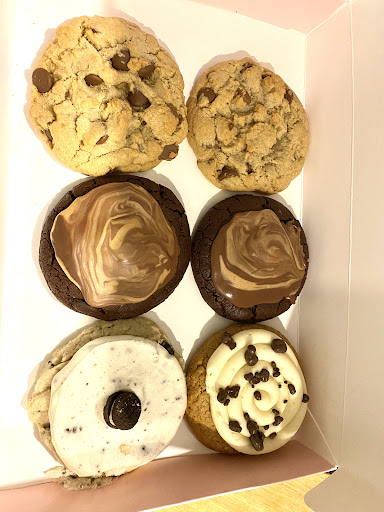 I'm not sure where I landed on this one, so I'm giving them 4 stars. The service was impeccable. Everyone was energetic and nice. I truly hope they are getting paid well because the employees deserve it. As for the cookies, I can see why people love them but they just aren't for me. They are gorgeous, the flavors are good, and the rotating menu leaves some palatable excitement. However, for me, the cookies are far too sweet. They inevitably taste the same by the end of a bite because the sweetness is tooth achy and cloying. Anyway, this is a me problem not a quality problem. I'd give them a try because the people are great here and the flavors are fun. However, I'd skip Crumbl if you have a sensitivity to sweetness like I do.