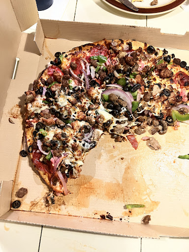 Read morePan pizza is good, but messy. Very greasy box. Toppings are good. Delivery people are pretty friendly.