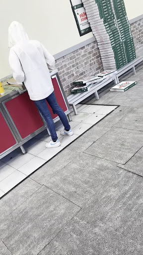 What I just experienced is the worst “service” I have encountered in my life. I showed up to pick up my order and there were 4 other people waiting while, who appeared to be the manager was just walking around sweeping with headphones on, while all the other employees were visibly very busy making pizzas. After about 10 minutes one of the other waiting customers got the managers attention and asked if he could check if his pizza was ready, the manger made one of the busy employees stop what he was doing to check out this customer and walked away. None of the other customers waiting in line were still even acknowledged. After another 10 minutes of all the customers in the lobby waiting to even be acknowledged, I got the managers attention and asked if he could see if my pizza was ready. He proceeded to what can only be described as an animal puffing out his chest and told me I “should wear a name tag so they know who’s waiting” I told him we had been out there waiting and he hadn’t even acknowledged any of us in the lobby while he was just sweeping, he then said “ I don’t care about you” and handed me my pizza, which had been ready the entire time we had been waiting. I’m so disgusted by this behavior and won’t be back for sure, which doesn’t really matter since as he said they don’t care. I wish there was another Papa John’s in the area since it’s my favorite, but oh well. Do yourself a favor and spend your money somewhere else where they at least don’t act like an animal challenging you when you just ask...
