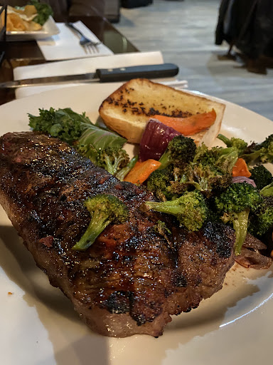 The atmosphere was decent. But, the service and food was not great. Including our table, there were only 10 average sized tables seated within the establishment. So, they were by no means busy. It took 10 minutes for a server to even approach our table. After a server came to our table, it took another 15 minutes before we recieved our drinks. The waters were sitting waiting to be taken to our table for so long, that the ice was almost completely melted! We were hoping that the food would make up for the slow service. But, unfortunately it did not. Both steaks were ordered medium. The outside of the steak was very well done, the inside was pink, it had no flavor, and was extremely difficult to cut with a STEAK knife. We were unable to eat a large portion of the steak due to the fact that it was extremely tough. The āsautĆ©ed mushroomsā that we added to the steaks were definitely not sautĆ©ed and had no flavor as well. I have never been so dissatisfied with a meal from a restaurant.Throughout our time at this restaurant, we gave them the benefit of the doubt multiple times hoping that the experience would get better. Overall, WAY overpriced for the quality of food that is served. I do not plan on visiting this restaurant again nor will I recommend this to restaurant after the experience that we endured. On the bright side, there ranch...