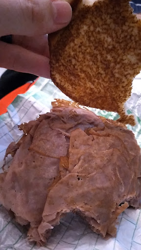 When my sandwich comes out, I smile and say thank you to the lady who handed the food to me. I look inside the bag, and ask her if I can please get some napkins. With all the warmth and kindness of a military drill sergeant, she jerks her arm up into the air , and to the corner of the room, and tell me “over there “in a very sharp and ugly tone.