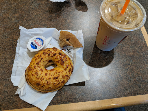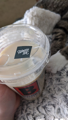 This is a very unapologetically slow location. This morning, we waited at the window for over 20 minutes to get both mochas and both bragel sandwiches. This is not the first time such a thing has happened here, either. Maybe they wouldn't take as long if they didn't aim for charring the bagels to BLACK before using them for your sandwich. EDIT: and now they have changed tea brands, which I didn't notice before ordering what used to be my favorite tea latte. It went from being a comforting vanilla bergamot blend to a jarring citrus bergamot that is too disgusting to enjoy. Avoid Fraser Tea, I guess. The service was moderately faster...