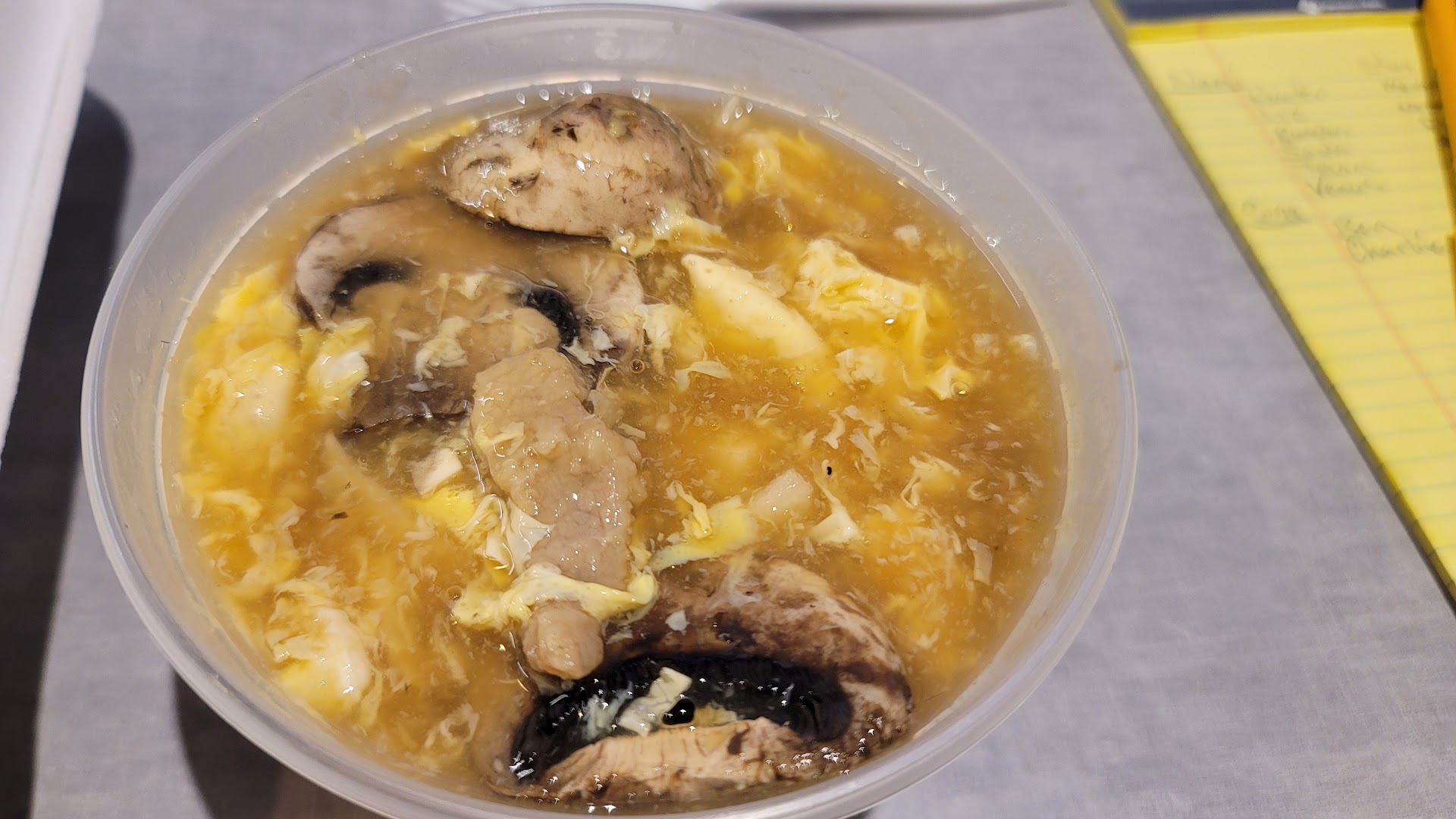 On the first two occasions, the hot sour soup was replaced with a different entrée, leading to a sense of frustration. Although my latest order did include the hot sour soup, it deviated significantly from my expectations. Rather than the familiar texture of hot and sour soup, it resembled more of an egg drop soup with unexpected additions such as mushrooms, carrots, and an unfamiliar meat. Regrettably, the flavor profile did not align with any traditional hot and sour or egg drop soup I have experienced, and I found it to be unappealing.