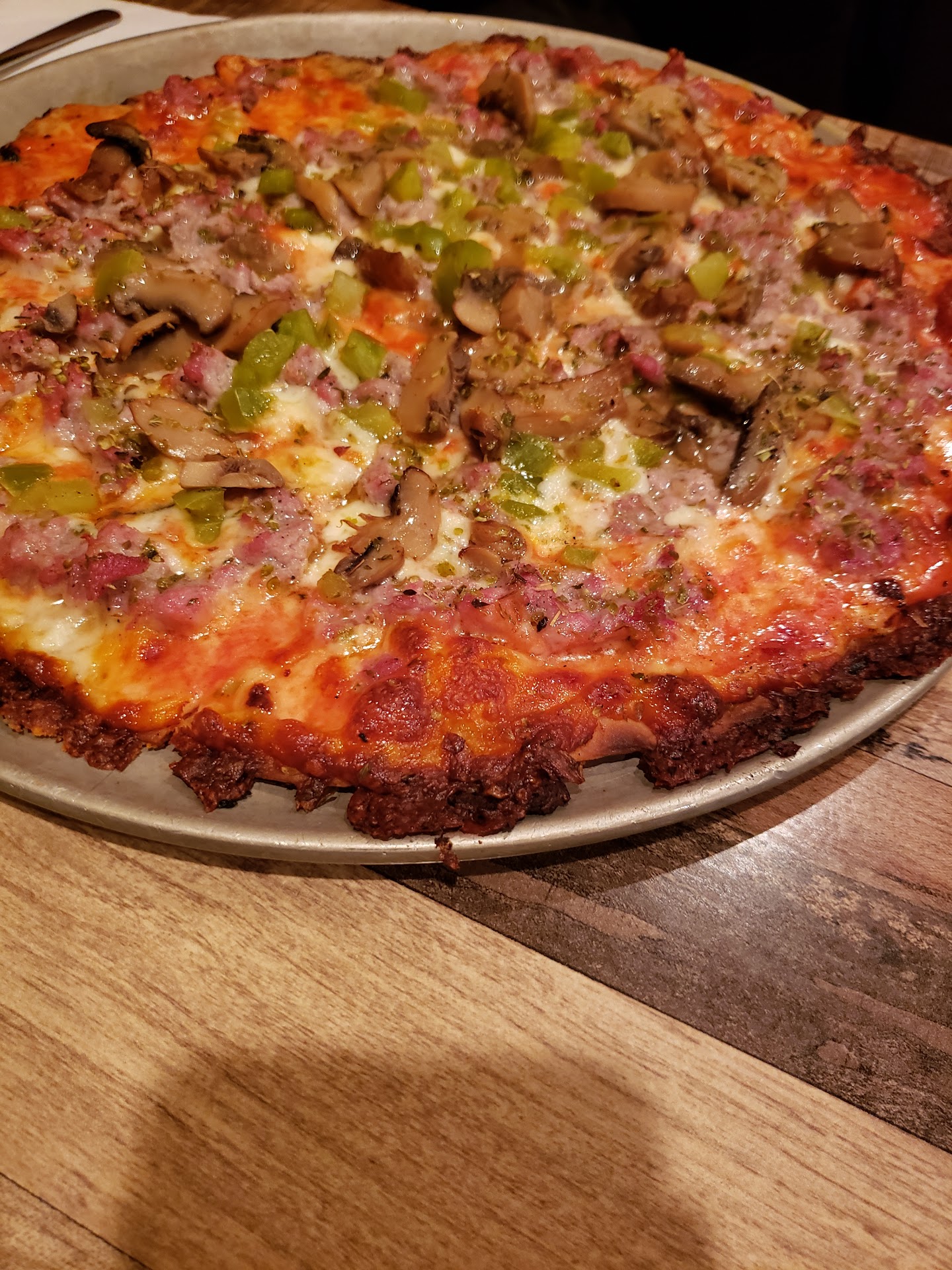 Completely horrible. First time there and will never go back! Was seated and ten minute later a rude waitress came to the table and asked what we wanted. When I asked where the menus were she scoffed and said there were no menus. Its just a pizza with 5 toppings. We then ordered our pizzas and asked for one of them to be half mushroom, When we got our pizzas 45-60 minutes later the one that was supposed to be half mushroom was covered with mushrooms. When my husband had stated that it was incorrect she looked at him and simply said "What do you want me to do about it?" He asked if we could have a replacement as she messed the order up and she stomped off. About another 30 minutes later we were still waiting for the messed up pizza. we hadn't had refills on our drinks and asked for them. Finally my husband spotted another waitress and asked her if we could get some refills. She was amazing and promptly brought them to us, as she set them on our table the rude waitress came up and rudely said to her co-worker "I had the drinks!!!" Also while waiting the hour for our pizzas the hostess was drinking a margarita and chatting with the wait staff while the nice waitress was running in circles. after receiving the pizza that had been corrected my friend asked for another beer. She went and got the beer chatted with the bartender for a few minutes and then proceeded to slam the beer on the table. After we had ate the pizza, which was disgusting, we got up and went to pay our check. when my husband was asked how the service was he told the manager all that had happened. The rude waitress then confronted him and said " what else did you want me to do?" When my husband answered that she could have at least brought him one refill of his water she turned around and stormed through the kitchen doors. Honestly i don't know how this place stays in business but I for sure will not be back. Only rated with one star because negative stars...