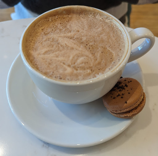 Ā Ā Ā Read moreCute little cafe with a focus on my favorite dessert, macarons. It's a short walk from public parking lots and right in a cute shopping area. The cafe has a few tables, bookshelves with some children's books for sale, and also has a restroom. Service was near immediate as it relates to macarons and the coffee took 5 or so minutes. Overall the macarons were good, though some of the shells seemed a little overbaked. Some flavors I enjoyed more than others, I especially liked the bananas foster macaron and the almond macaron, because those flavors came through nice and strong and the texture was just right on the ones I ate. I would go back, though I'd probably stick to flavors...