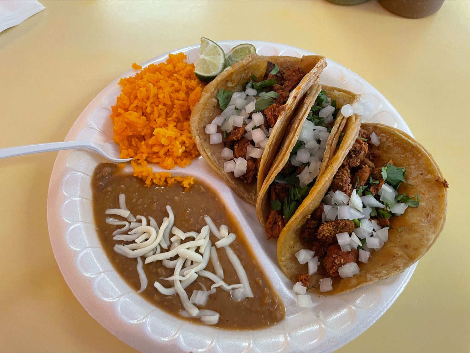Read moreThe staff here are always very pleasant and professional that is so refreshing especially as of late! Very tasty Spanish rice accompanied my chicken wet burrito. I am not usually one to eat spanish rice,but it was very tasty!! I usually always get extra cheese/sauce on my wet burritos, but these are good just they way they make them! The flavor in my chicken wet burrito was nice & flavorful not spicy.The green salsa sauce is my favorite, they offer a red salsa spicy sauce too.