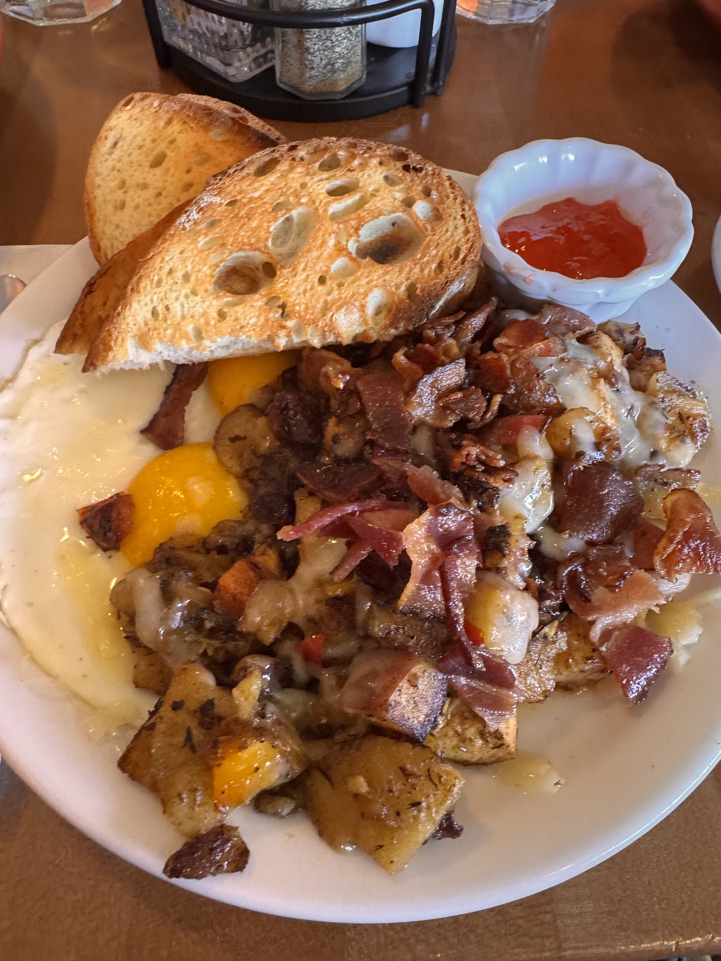 Read moreNo idea how this place has such good reviews. We came in from GR and gave it a try based on reviews and homemade biscuits on the menu. The menu was very small, and only a few traditional breakfast options. Most of the items have onions and chorizo in them which didn’t make much sense. It appears their biggest sellers and what they’re known for are the “dessert breakfast” options and the biscuits. We both ordered scrambles and the potatoes were cold and squashy, you could tell they had been cooked at one point and were crispy, but then sat there and then were just reheated. The eggs were very greasy and also squashy. The biscuit was the star of the show but still fairly dry. The honey packets on the table aren’t even real honey, and the butter cubes served with the “biscuit made from scratch” are sub par mediocre butter. My husband and I both left feeling nauseas, gassy, and not well. For 2 scrambles with water and a tip it cost $33, mind blowing for the awful quality food being served. We definitely...