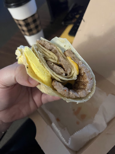 Me (Dad): Mountain Lion and sausage egg cheese spinach wrap, 10/10 wrap was excellent and salsa had a nice kick without being overpowering, drink was excellent with a nice espresso kick and just sweet enough to be enjoyed.