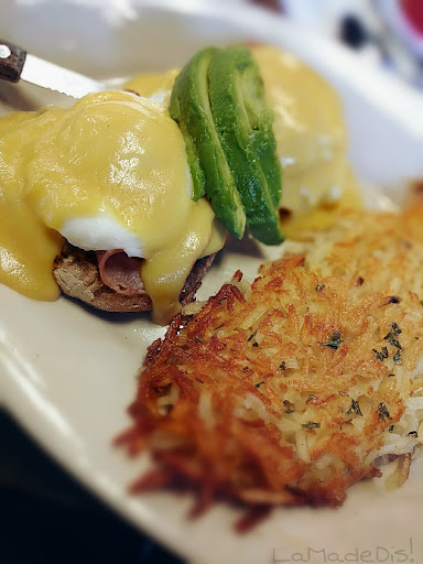 I ordered Eggs Benedict. So, here's the thing. It was delicious. But one day, I will find a place that prides itself on a true hollandaise sauce. This was not it. It was basically a chicken flavoured sauce. Still, it was nice and I ate it! The garlic hash brown was pretty good too.