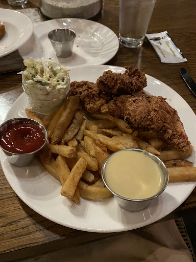 Pretty pricey but I think a lot of places at Big Cedar and Branson are priced for tourism. Our table of four had the NYC pizza, fish and chips, chicken tenders and Wings. The pizza was just warming, I think Knut waited a bit. The longer we had the less I liked it. The chicken tenders and fries were very good. A decent size portion but very pricey. The fish was really good but again pricey. I did not try the wings but they did look good. The person thought they were pretty spicy and he had ordered mild. But other than that they were good. So overall it was ok. If the pizza had been hot I would have been really happy. All that with 4 waters cost about $86 plus tip. So would I come back? Maybe but there are many other places I...