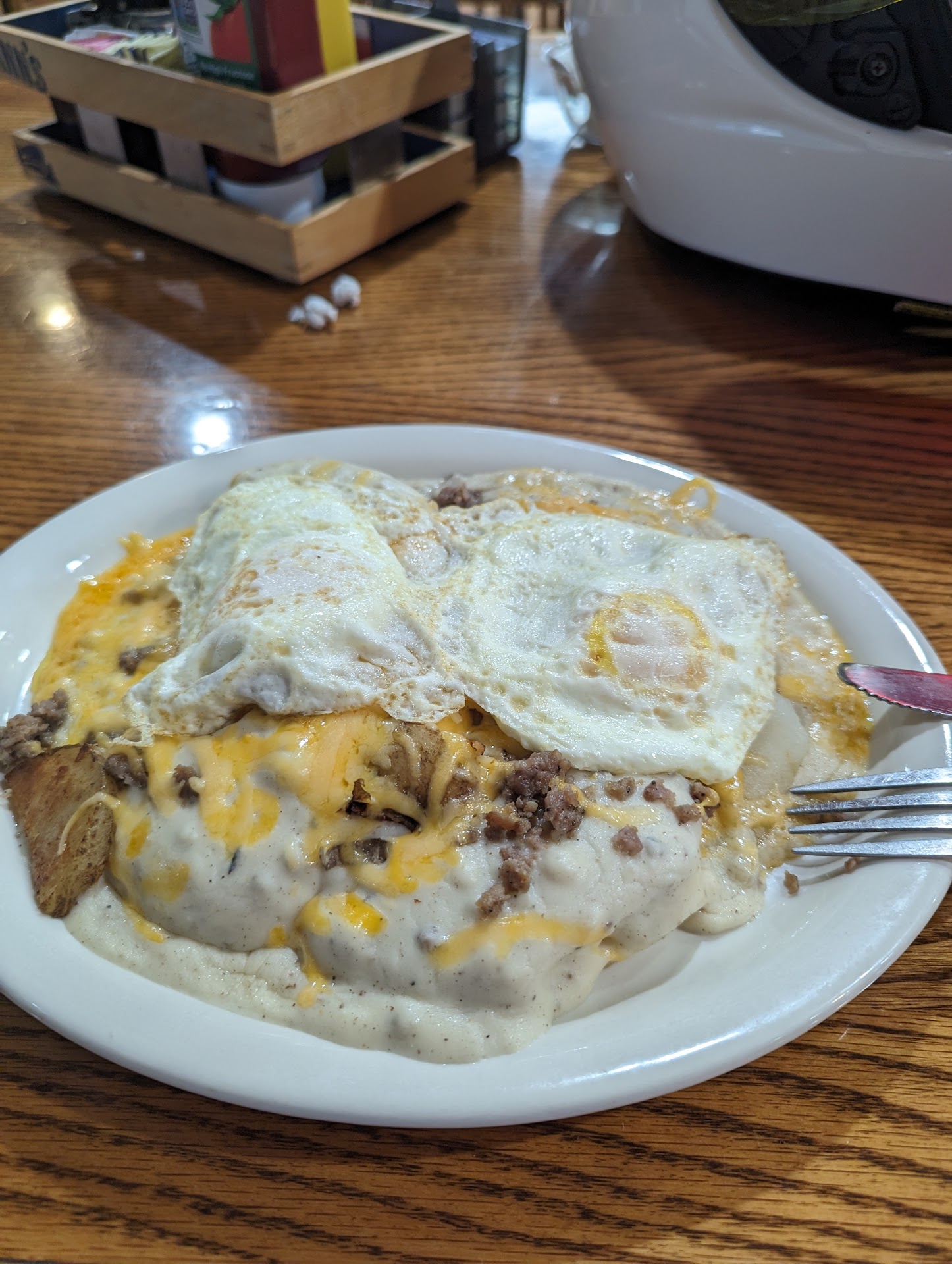 Read moreWe had breakfast again here Sunday. Our 3rd time here over the past couple months. Service is pretty good but they sure could use one or two more servers during the busy times. They were pretty busy at 10am this past Sunday. 3 servers. Several not cleared tables. Staff was moving quickly, but unable to keep up. Our order took aboutb15 minutes to table. My biscuits and gravy was not hot. My friend's eggs were not cooked hard as asked for. Coffee was great! And, refilled often. I REALLY WANT THIS PLACE TO MAKE IT!! Constructive criticism: during busy times...definitely need an extra waiter or 2. Bike week coming up. Need to step up the service! Absolutely need an extra prep person in the cook station. Too slow on the grill! A set up person would cut down the late food arrivals. Cooks need to get it right the first time around. Mistakes waste time. Talked to the owner, Kim. She has awesome aspirations. Stay on top of it, Kim! You've got a great idea here!!! We want Gina's to be here for a...
