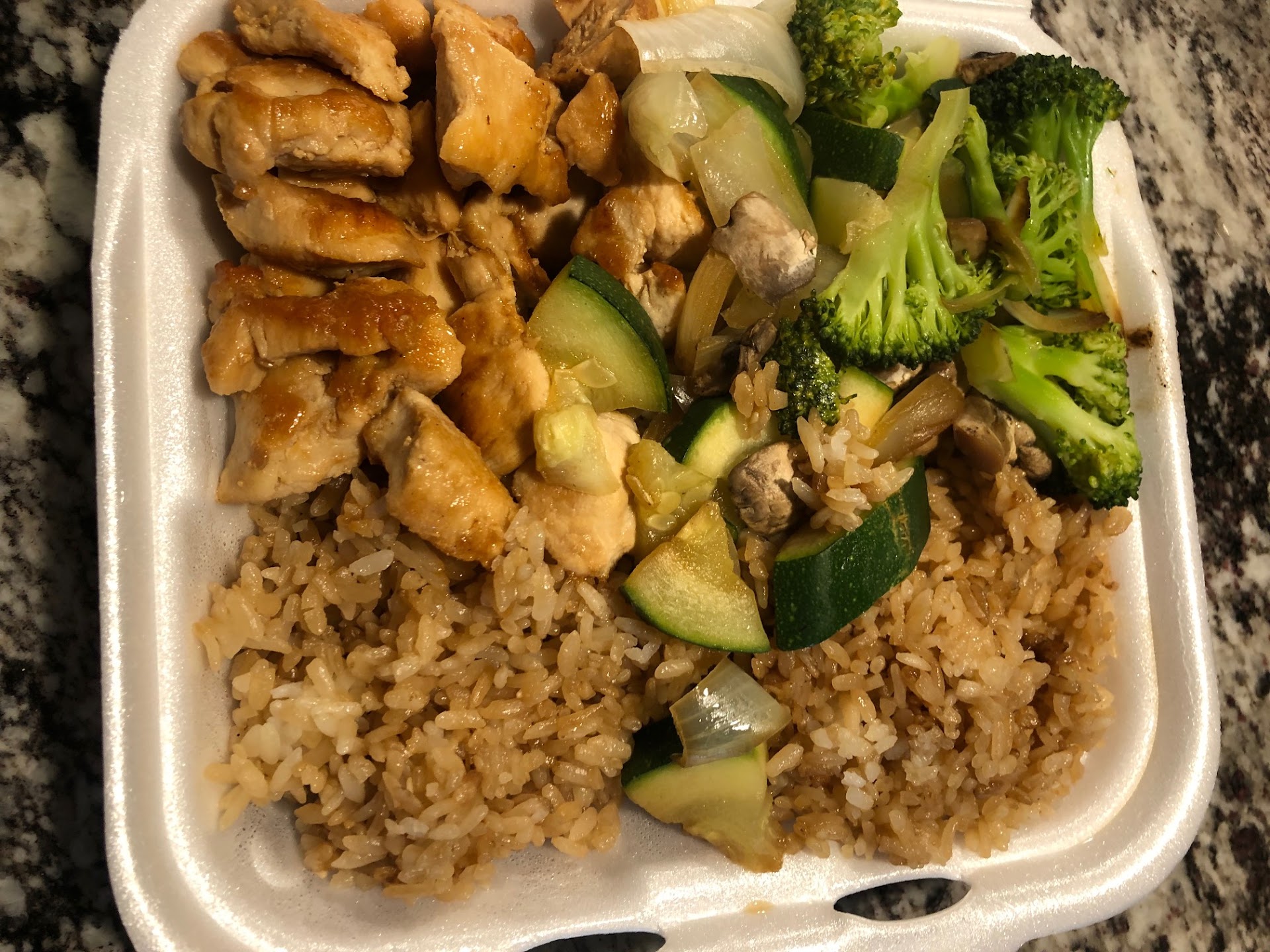 Ordered 3 appetizers and 4 meals. Appetizers are supermarket bought items they cook, not made in house, we buy the same ones at h-mart etc. Ordered 1 chicken & 1 steak hibachi. Both meat are just that, meat with no seasoning or flavor, another was a combo hibachi which had shrimp and scallops, that was much better. The rice with it is a large portion and is brownish but again, no flavor, not sure why its moist with brown light sauce w/no flavor. All came with a portion of veggies zucchini, broccoli, onions, they were good and best part of each lunch. Also ordered a noodle lunch with chicken, same flavorless chicken but noodles were good. Egg rolls and dumplings are average. Steamed edamame was good. All meals are served in styro, no plates or cups avail with appatizers or meals so eat out of styro. Note: all styro, soda bottles, paper etc here are recyclable but all goes into their trash. They do not use MSG, I know the taste and we used a ton in our Asian restaurant. We will retry in a couple months to see if they've adjusted, but if it's the same then a no. It's not bad, but it's not good...