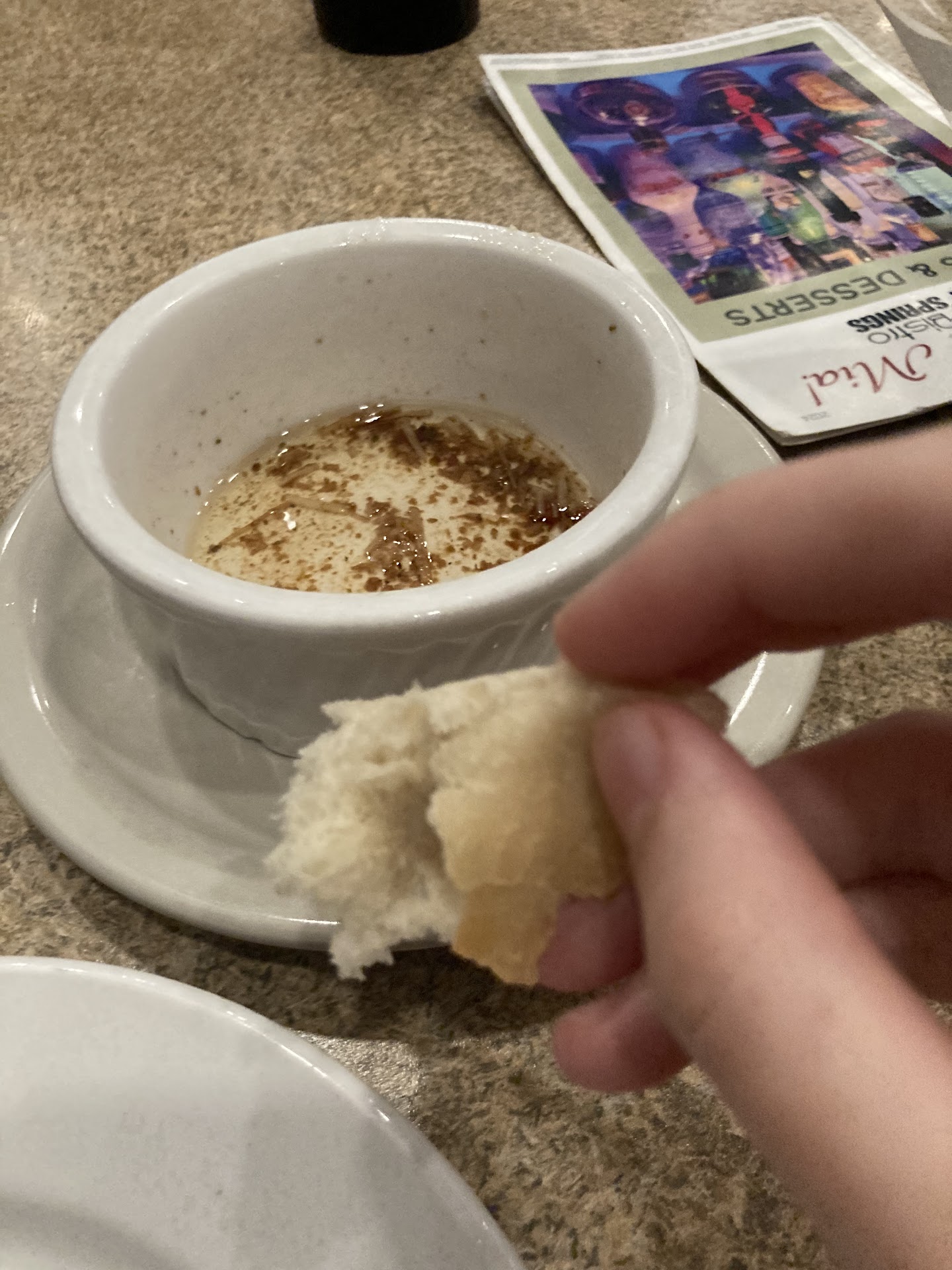 I think their table bread with the brand of virgin olive oil and high end vinegar glaze is really good. This is better then the appetizer I ordered and would say it must hurt their appetizers for the fresh bread they make. (This should be a hard dig at the next door Italian resturaunts because they must reheat some wonder bread and serve it with some cheap olive oil)