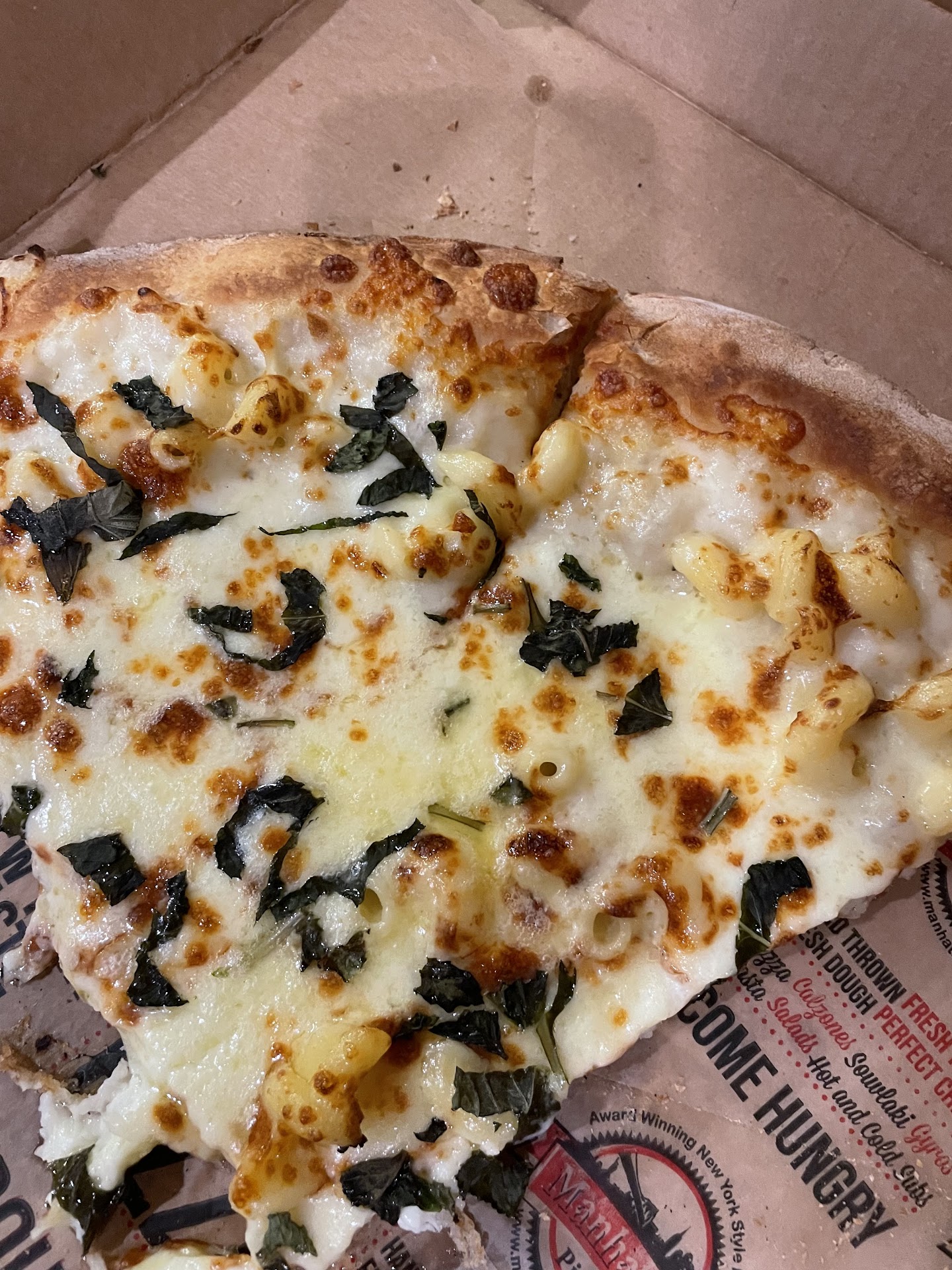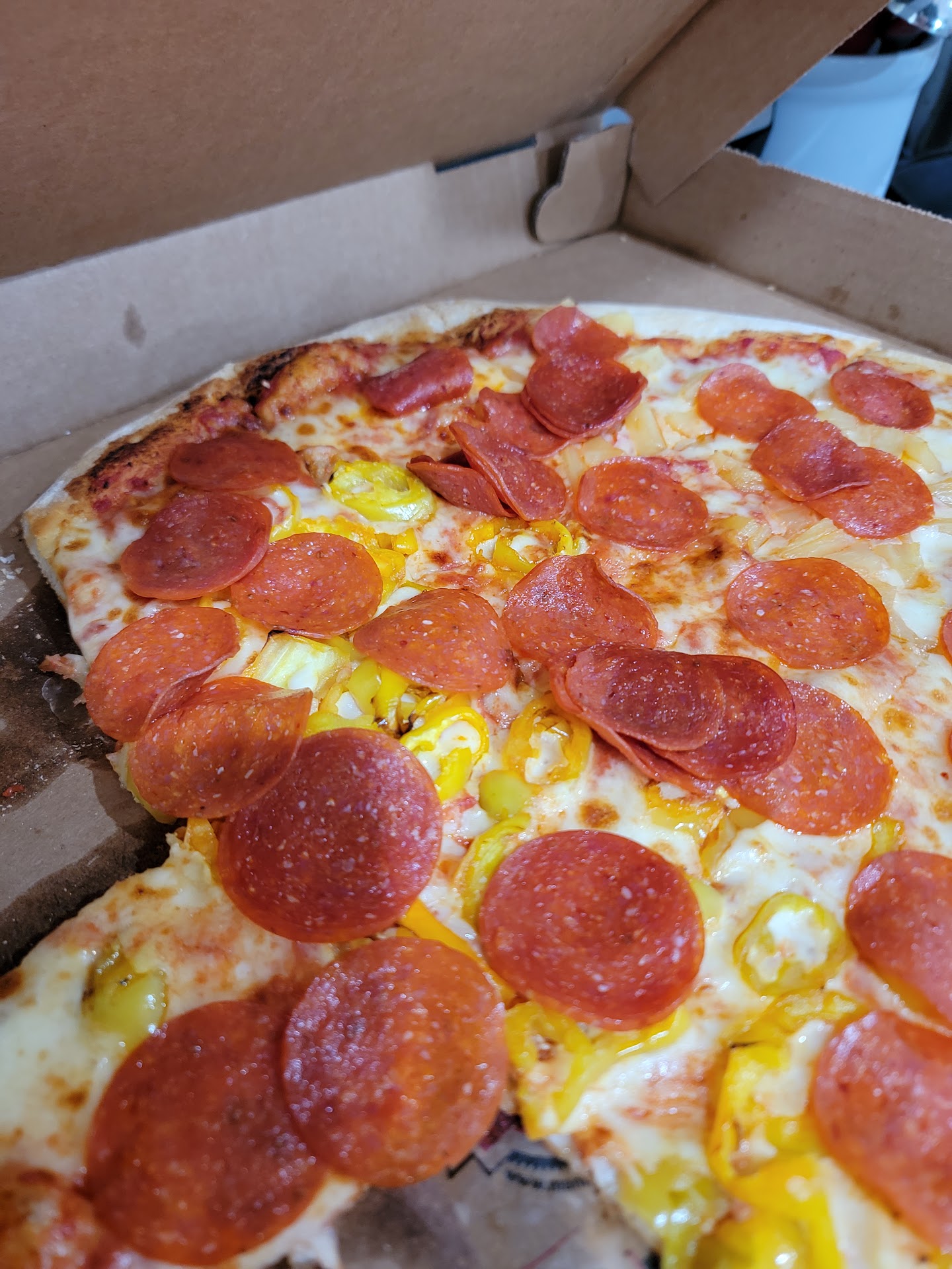 After picking up our plain pie and driving home, about 15 minutes later, we opened the box and saw, what looked to be a decent pizza, but looks were certainly deceiving. The crust had a cardboard like texture and was very dry. I prefer a more acidic pizza sauce and Manhattan Pizza delivered on that, but the flavor was very lacking. The cheese did not seem to be a good quality either, so the 3 primary components of the pizza were a miss. I'd actually rate the pizza at, or slightly below, the common national pizza chain pizzas and I'll have to rotate a few of the other, better local places as our "go-to" until we find one that's great.