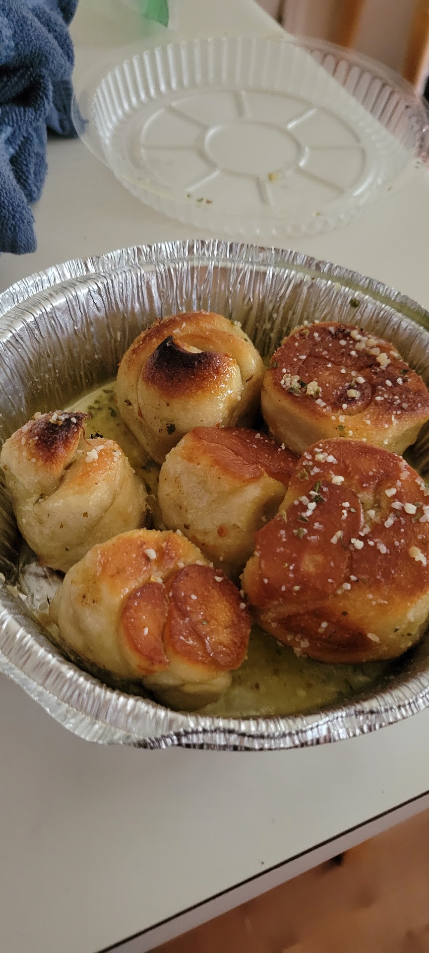 Read moreIf you always want to wait and end up with uncooked food, this is the place. Now, I will admit going on a busy night one takes chances, however you'd think after nearly an hour past the expected pick up time, they'd get it right. Knowing they get behind, I strategically show up 20 minutes after my pickup time. "Just waiting on your knots" turns out to be 45 minutes. So, now I have 2 of my 3 pizzas cold b/c they are sitting on top with no heat. Fine - Wife has the oven on, we can heat it up no biggie. But the knots... first of all, they completely forgot me. Even after asking again about what I was waiting for. I sit patiently waiting for my name to be called. Nothing. Time passes. Patrons come and go. I finally decide to say something... the knots are sitting off to the side and probably have been for 30 minutes. I get home - the knots aren't even cooked! one pan is dang near raw, the other looks like it was cooked in an Ez-bake oven.