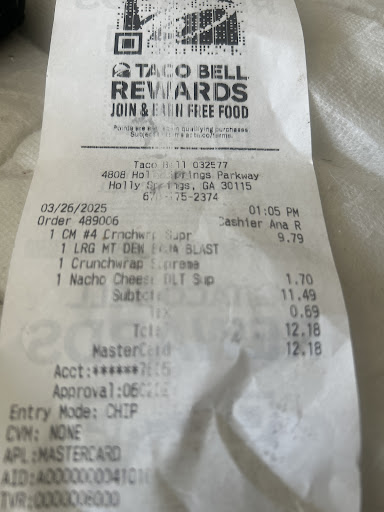 Ā Ā Ā Read moreI have lived all over this beautiful country and have driven itās ever growing roads for 20 magnificent years. In those years, I have had the pleasure of visiting quite literally thousands of Taco Bellās, and have such experience all that this establishment has to offer. Iāve received wrong orders, other peoples orders, food that probably should have been thrown out, and witnessed some of the most horrible customer service there is (and I fly spirit airlines so trust me, I know). I once witnessed a murder in the parking lot of a Taco Bell Adjacent to my workplace⦠true story. I moved to this wonderful area 7 months ago and had, lets just say, not so high expectations. Much to my surprise I received exactly what I ordered and to top it off the ingredients were fresh. In the 7 months since I have yet to receive an incorrect order, the food is always fresh, and the staff is always friendly. Good job Taco Bell, my love for you...