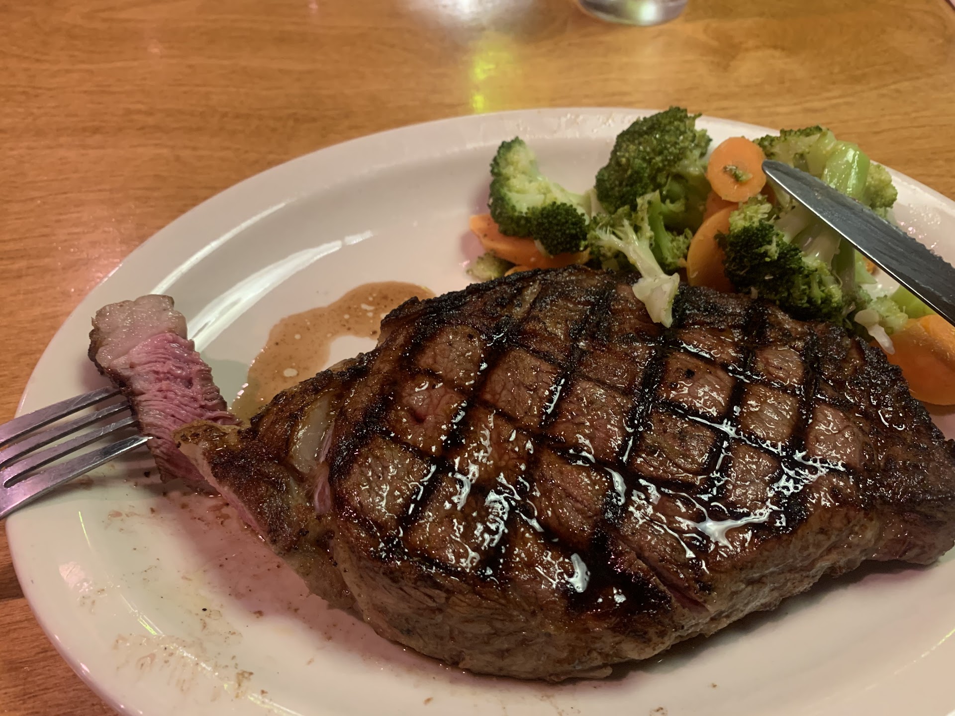 So this review is actually ZERO stars. I was driving 40 minutes to come have a late dinner of steak and mash potato’s. It was a little after 9pm, and they close at 10pm, so I called the restaurant to pre order, so as not to hold anyone up from cleaning up and going home for the night. The younger sounding male told me he would send me to “to-go” dept. I explained I wanted to eat in the restaurant, as I was on a motorcycle, and I’d be arriving shortly before close, that often people lag for 30 minutes after restaurants “close” to finish their meals, and I’d like to get the order in to prevent what actually happened when I arrived. He said “oh don’t worry, as long as you walk in at 9:59 or earlier, you can order whatever you want, and that the kitchen doesn’t start cleaning up until 10pm. I asked if he was sure, and he affirmed. So I proceeded, and arrived about 10 min to 10. Door was locked, and the only way I was able to enter was by people leaving. I entered and saw the kitchen was in full motion breaking down and cleaning up. Grill was off, and staff was getting ready to walk out. I stood there a minute before a manager came to me and said “well, we’re closed but we’ll get you taken care of…as he offered me a seat at the bar next to another manager who was spread out with paperwork and a beer, running the daily take I imagine. I explained to the manager as I sat down that I called ahead and attempted to pre order but was told as long as I arrived before 10 that I could order whatever I want. He was obviously burdened by this, and passed me off to the bar tender, who reluctantly asked for a drink order. The manager quickly returned and said sorry, we can’t do sides. I explained again what their employee said on the phone, and what I offered to do 30 or so minutes prior. He said I’ll turn the grill back on and give you fries, and that’s it.