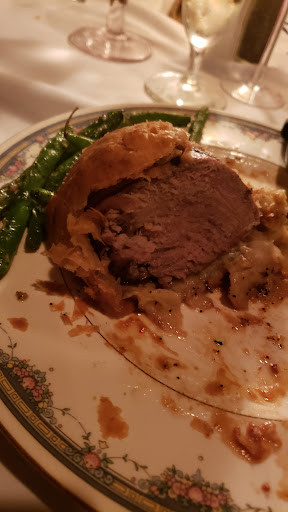 My husband had the pork belly, which was supposed to be warm but it was served to him with multiple pieces cold. While in contrast my beef wellington, which was requested rare, was drastically overcooked and tough. It tasted like a chunk of roast beef was used instead of a filet. I was quite disappointed, as I have made better tasting, cheaper cuts of steak at home and honestly I've fed my dogs nicer steaks than that. The pork belly entree was $56 and the wellington $44, for that price I would expect significantly higher quality in both the ingredients and preparation of the food.