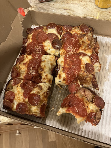 Great pizza - light, airy dough, crispy sides, good toppings, true Detroit. Detroit style is unusual for people who are used to the sauce being just above the dough but it's really no different than those dippers that pizza hut (or dominoes, little caesars, whomever) had for a while.