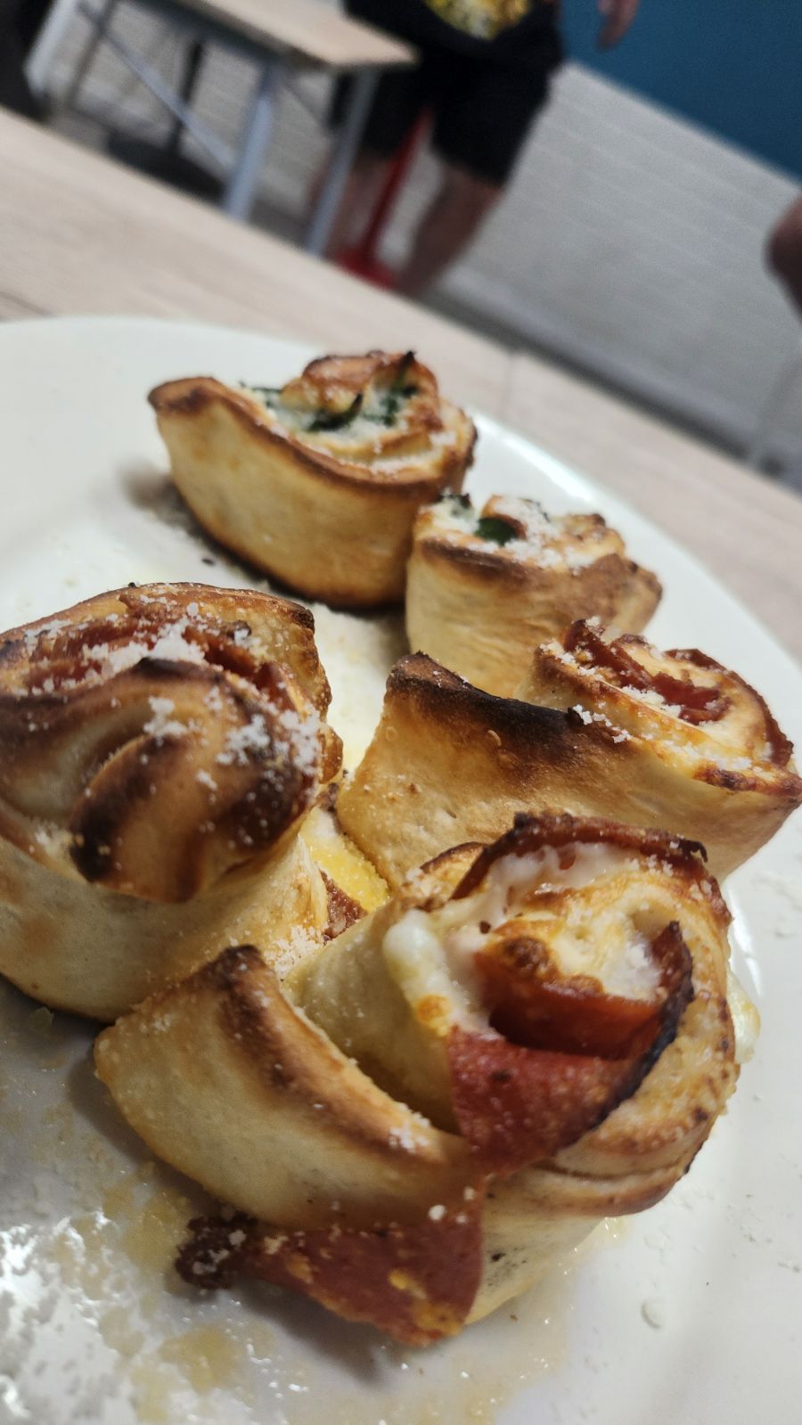 It's a little doughy, chewy with a bit of a crunch (if you get it well done) is some of the best tasting dough I've had in South Florida. I know some people prefer thin and crispy over chewy and doughy, and vice versa. Some pizza doughs can be thin and empty with no flavor, but not this one. The sauce was fine, although I can see how some people might be looking for more of a kick or a tang with the sauce. The cheese was good quality, with good coverage, and the toppings are generously layered on top. The stuffed rolls, accompanied by a nice marinara, are a nice compliment to pasta as well.