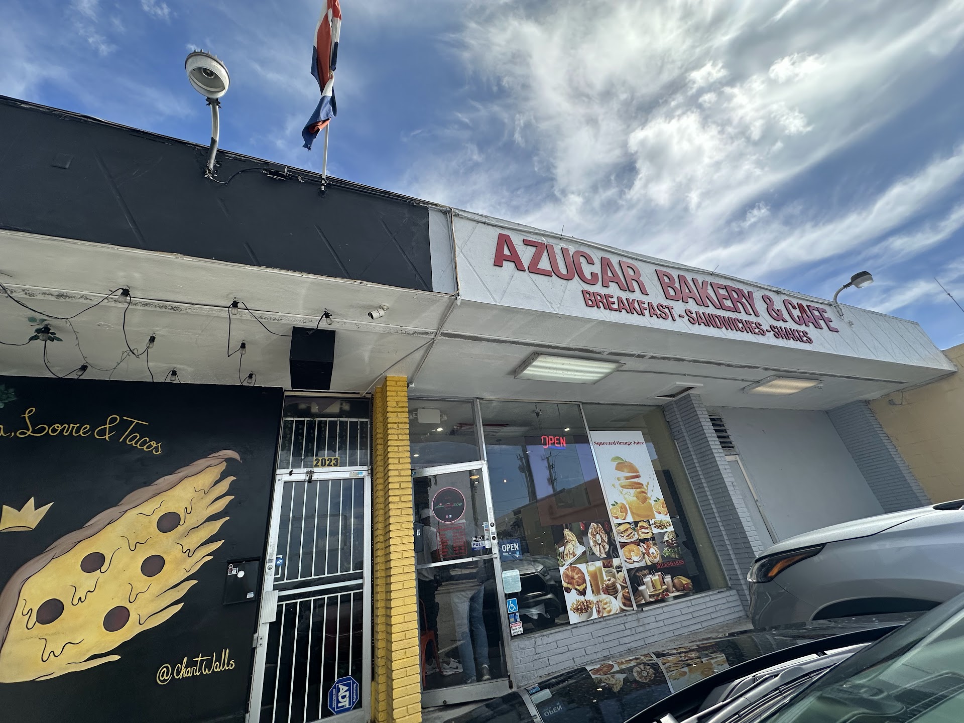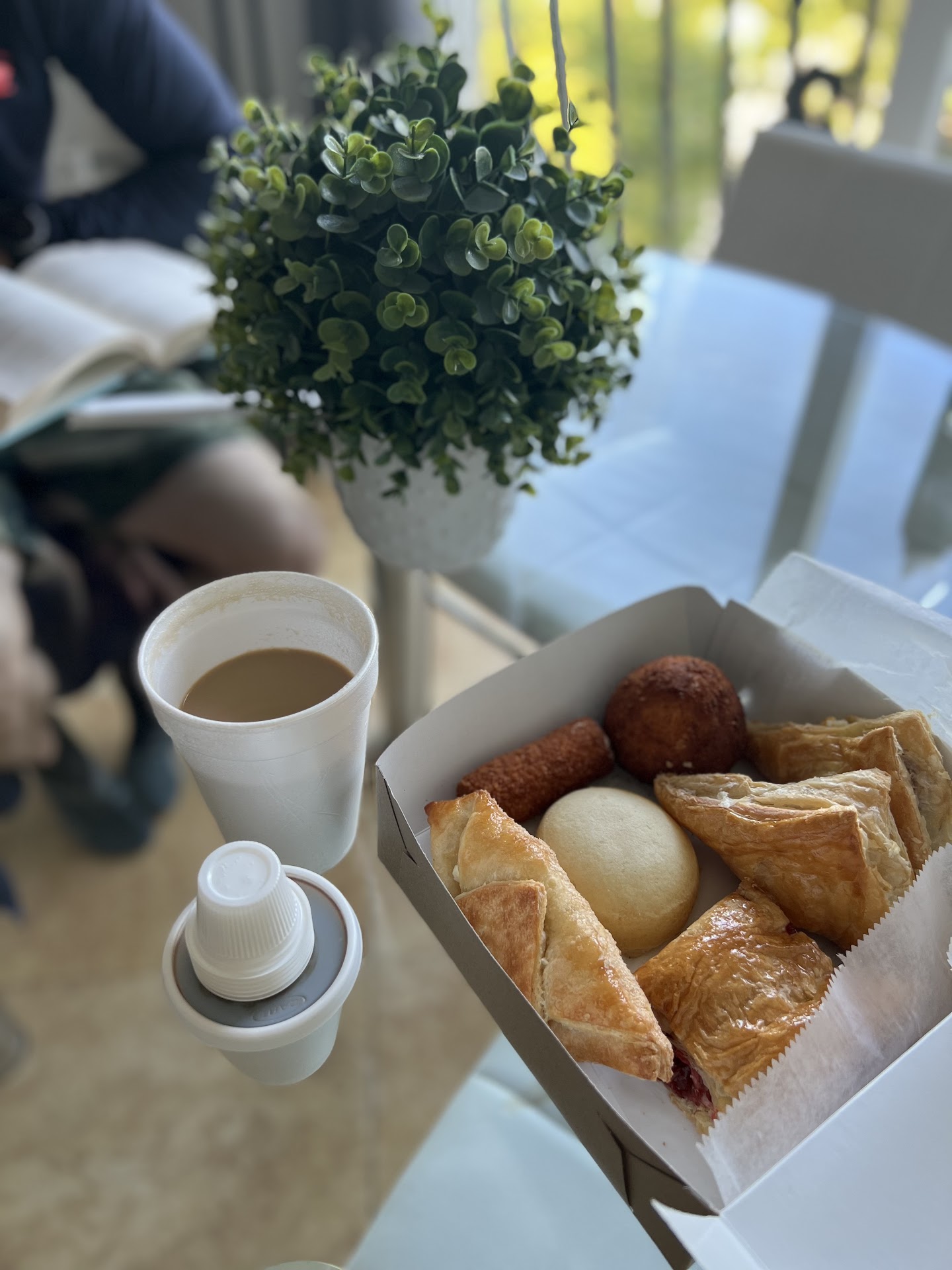 I happened to be in the neighborhood, grabbed my order, and ate in the car. I also treated myself to a delicious perfect café con leche ☕. Next time I'll get a large.