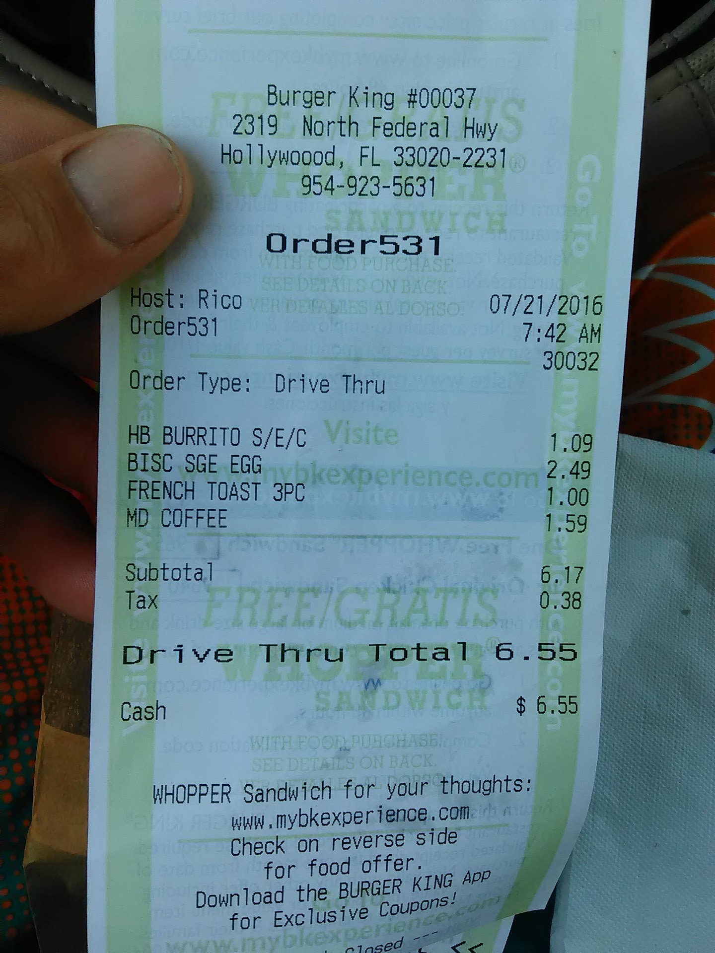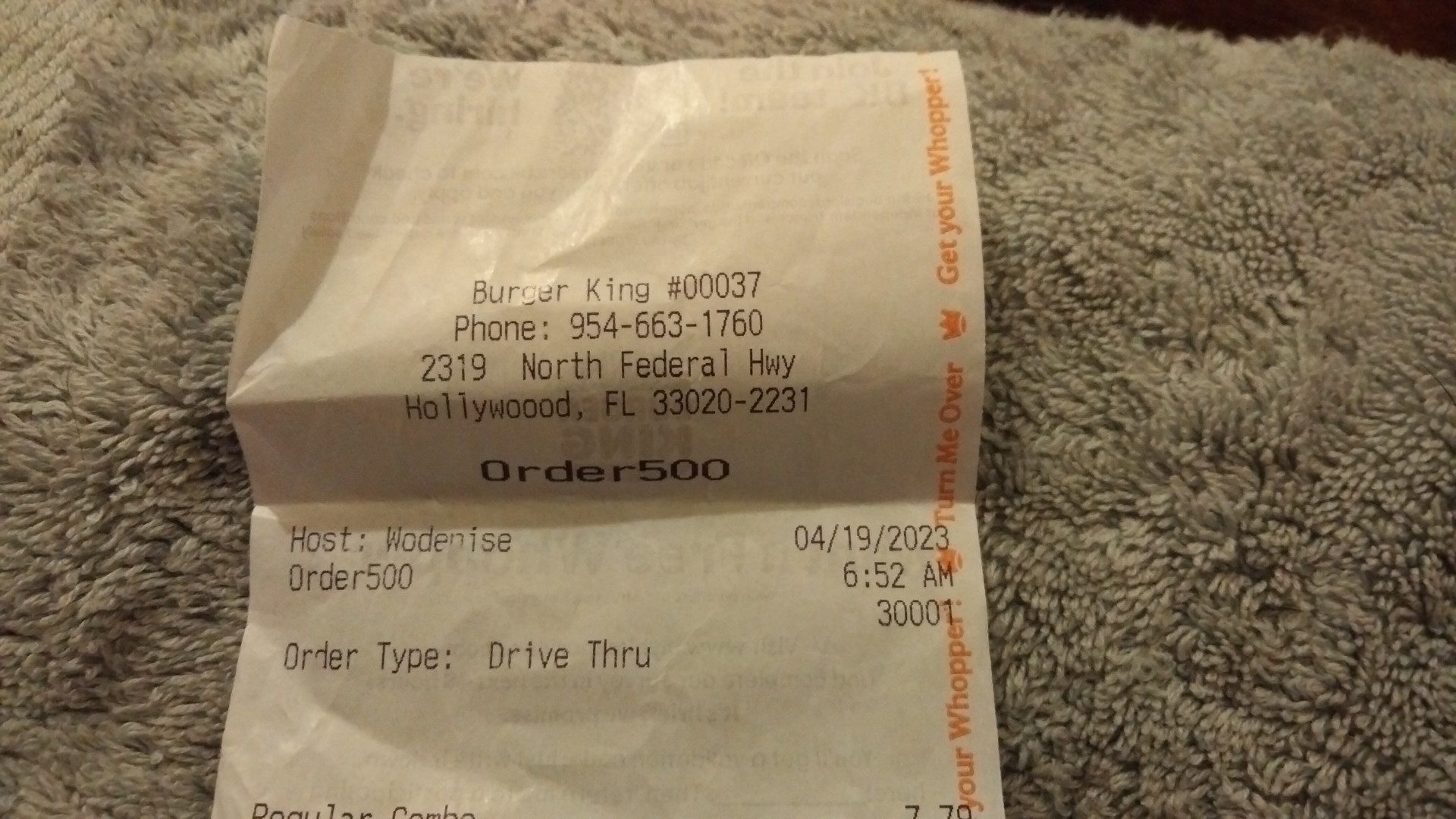 Read moreDrive thru customer service was very poor. The customer who took My order charged me for a cone when I originally asked for 2 vanilla shakes which she said it comes in 1size. Her attitude was so bad,I asked for a refund and I was told to come back Monday when the store manager would be in. The manager on duty got on the phone and called her boss and told me that her boss would be arriving shortly from Hallandale, and the boss lady said I couldn't get my refund and too call the cops. The employee who took My order was very rude and disrespectful I was told her name was DESTINY and I was not given a receipt which I asked for multiple times. The mgr didn't removed the employee from drive-thru window this was a total bad experience, my 16.78 that I spent was wasted and I was forced to take food in which I asked for a refund which mgr told I had to wait till Monday, I asked about burger policy Information and was deny that as well. Manager never gave me my receipt and left the drive thru ,I'm unhappy I strongly believe I was denied my full refund, as a customer I should not have been forced to take food when I ask for a refund, customer service from manager on duty and the young lady DESTINY which is the name they told me was unpleasant and I will not return to this burger King location, and I will go to Hr immediately. It was wrong for them not to give me a receipt and with the employee who took My order. As I left she took her middle finger at me, please look at the cameras ,she should be terminated, that's not how you treat customers. My hard owned money wasted something needs to resolved still for the bad...