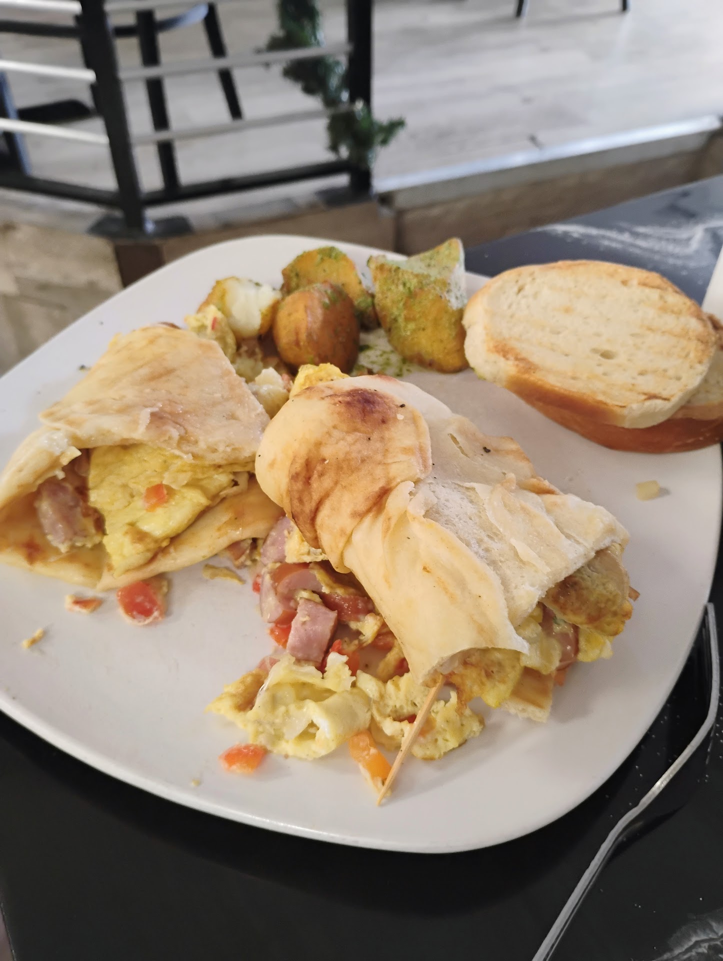 Upon arriving on a Sunday morning with only half the tables occupied, I stood there waiting for a seat. After several staff walking past me with no acknowledgement, I walked inside and asked if I could seat myself. After sitting at the table for approx 9 mins I finally asked a staff member if I could have a menu. I ordered an omelette with Chicken breast, cheese, spinach, tomatoes and onions. I asked if the cheese could be Feta. She said yes but failed to mention that there would be an upcharge of $1.50 not sure what cheese it comes with because it's not specified. Just "cheese". the potatoes are fried country potatoes not Home fries which I prefer. The one slice of toast was not toasted but warmed which gives it a stale texture. The omelette itself was a handful of frozen spinach, a few pieces of feta and tomatoes and dry skin layer of a red onion, no seasoning or effort. The coffee is weak and been sitting on the burner too long. I had to ask and wait for silverware as well as for cream for my coffee which I guess they only allow 2 per cup. As I write this, I have been waiting for my check to be picked up. I'm walking my check inside. Again, other than it having seating outside, I'm really not sure why people like this place. I'm changing my two star...