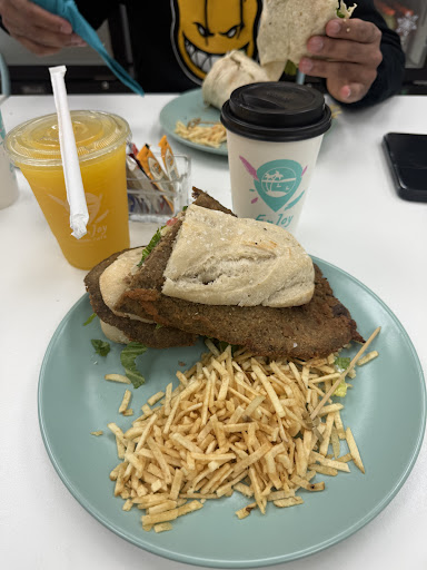 Read moreOrdered 2x from here. Not worth your money. Overpriced for mediocre food. I ordered a chicken wrap the first day, it was super dry and made me sick and nauseous. My boyfriend tried to eat it and he said the same thing. I thought maybe it was a one time thing and wanted to give it a second chance. First, I don’t eat pork and they don’t allow substitutes for any other meat so I ordered a bagel with bacon egg and cheese without the bacon (not a big deal). However, the egg was microscopic. Like barely covered a fourth of the bagel. My bf ordered a croissant sandwich and did an egg add on. He didn’t get his egg on his. The smoothie I ordered wasn’t a real smoothie. They took ice and almond milk (add on) and poured peach syrup in a blender with it and served that as a smoothie for almost 9 dollars 😂. I don’t know if they did add any fruit but it didn’t look like it. I tried to give it to someone else and no one would take it. There is literally a juice bar across that street that has real fresh smoothies the same price. I would’ve gone there had I known better. I will say despite not having the egg add on the croissant ham and cheese was enjoyable for my boyfriend. Otherwise we do...