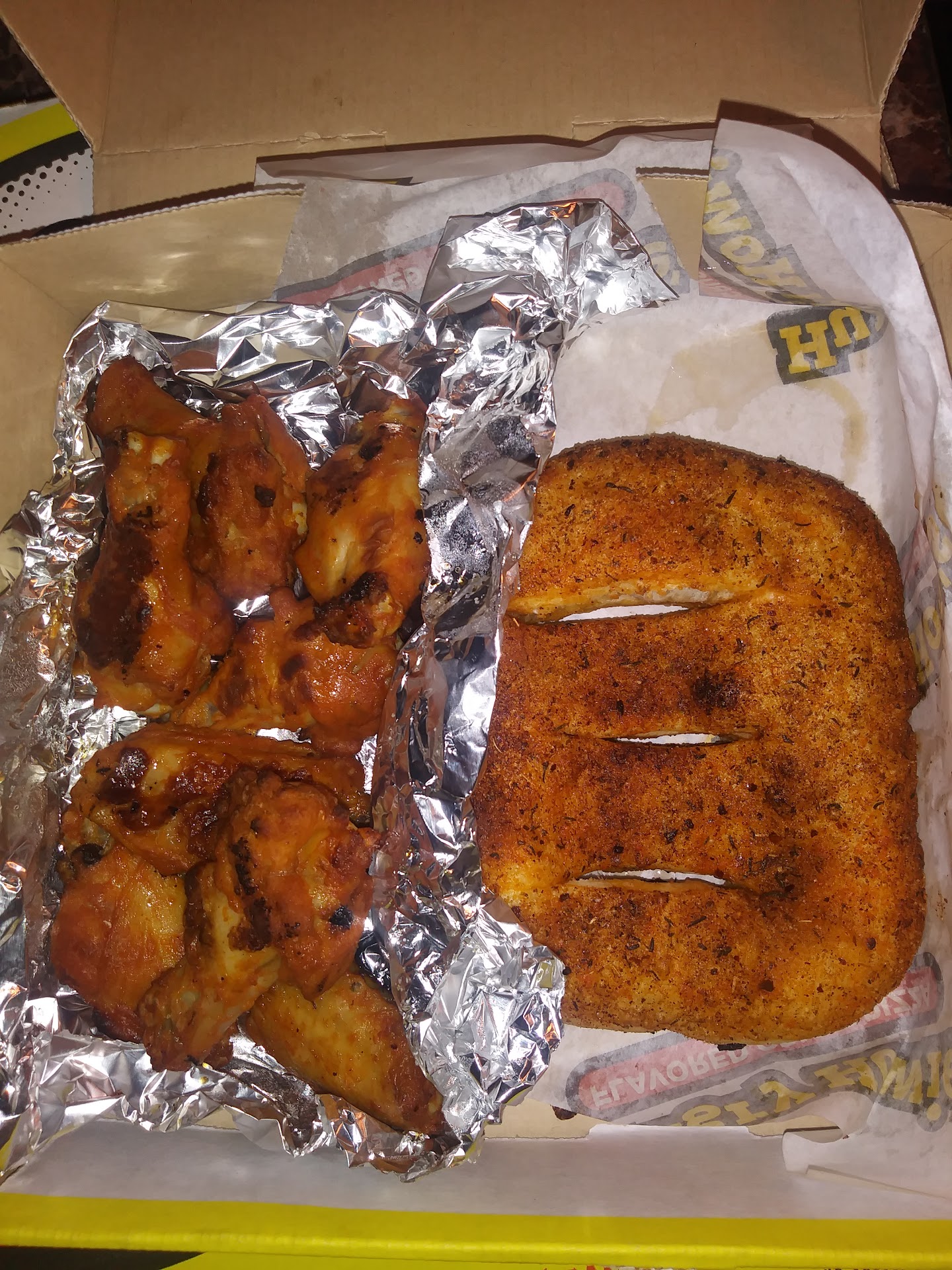 It's been six years since I last been to Hungry Howie's Pizza & Subs, and to be honest, I'm not that impressed with how the business was running. The staff seemed to be swamp with taking phone orders, making and packing the orders, as well as getting the ordera ready for delivery that there was no main person at the counter to take the carry out orders...so there's was a wait. When it was my turn, I ordered a 2-topping pizza and 8-pcs wings for $17.