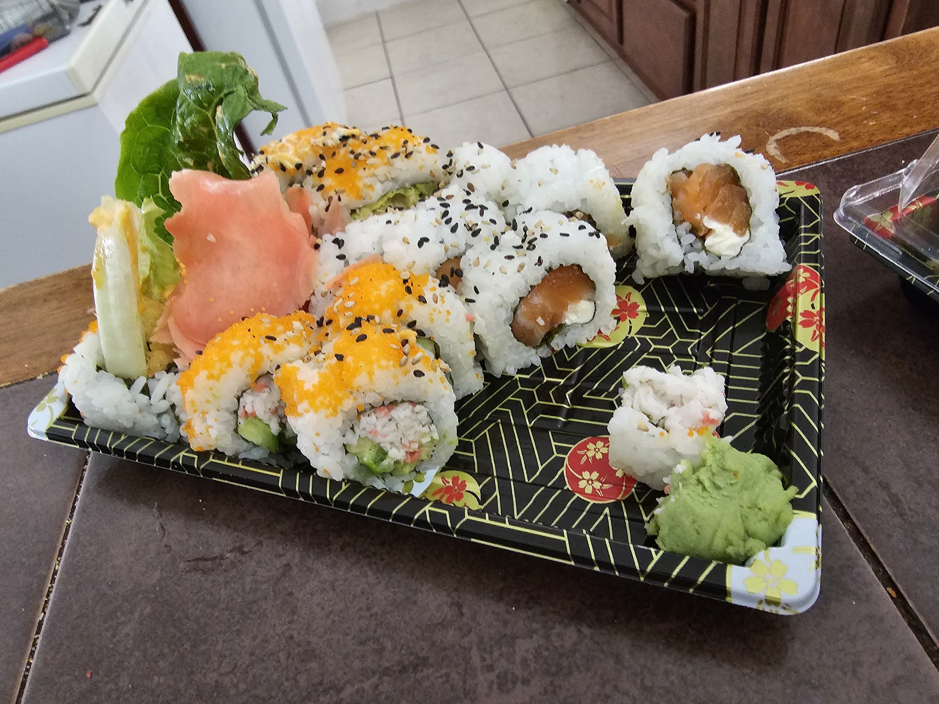 We have been coming here for a couple years with no real issues until tonight. We ordered an Amigo Platter, and the rolls were barely filled. It was mostly rice, no cream cheese as you can see in the photos. These are the smallest most pathetic sushi rolls I’ve ever seen. The amigo platter used to cost $22 and they have now upped the charge to $26, along with everything else on the menu and the sushi is much worse than it used to be. You can see in the photos that they have no problem giving you a normal sized California roll and other basic rolls, but everything else is skimped like they either couldn’t be bothered or are trying to cut costs on salmon and other ingredients. Total ripoff. Ever since the price increase, the service has gotten worse and worse. I went in to complain about the rolls and the sushi chef said that the filling was inside and I just couldn’t see it.... what? I unrolled it and there is barely a scrape of...
