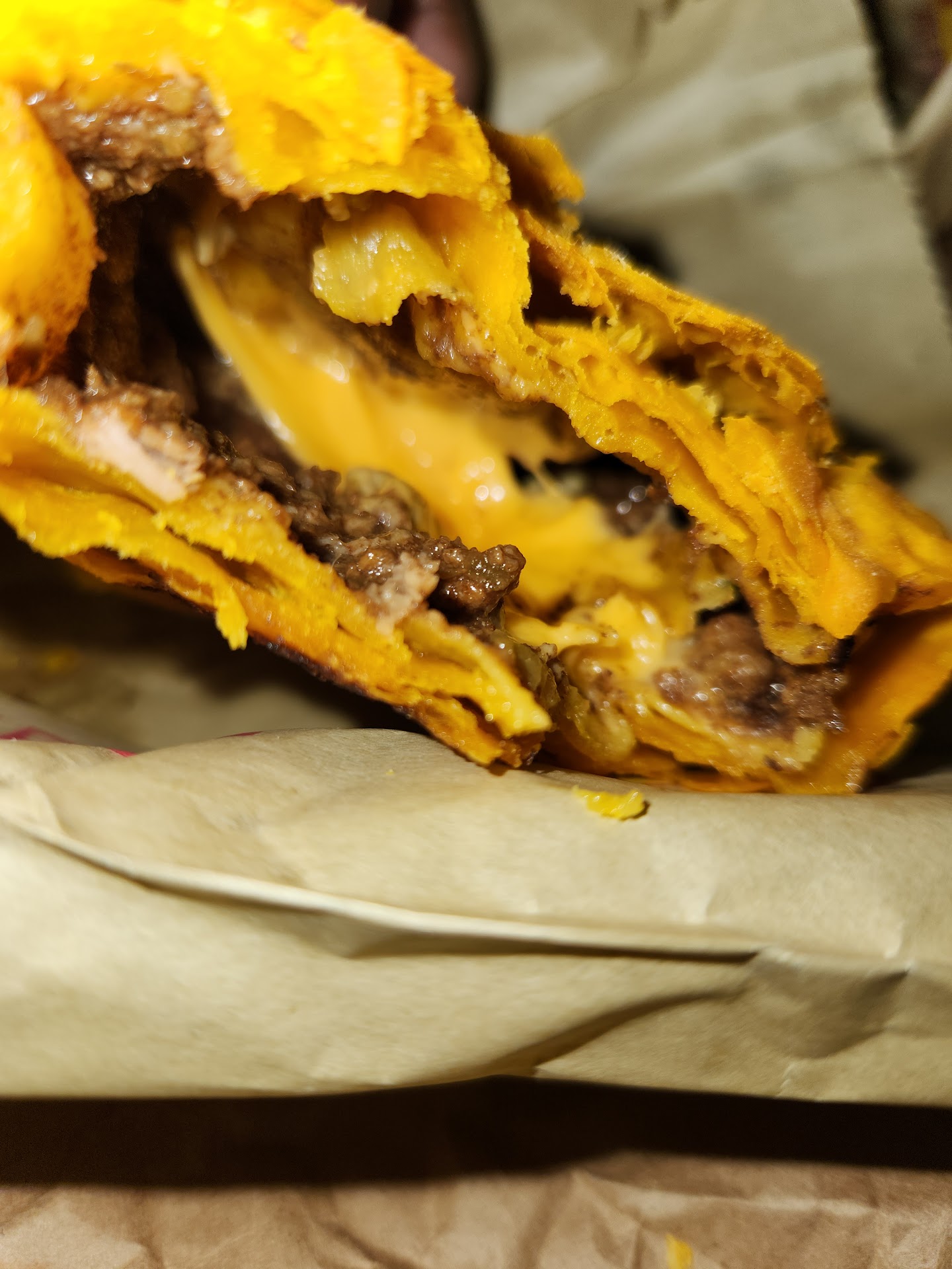Spicy Beef Patty with Cheese - Now this combo was surprisingly nice! My favorite out of all three. The cheese just gives it that extra umph. The crust texture again was slightly flaky and not spicy at all. 75% of filling. I rate it B+