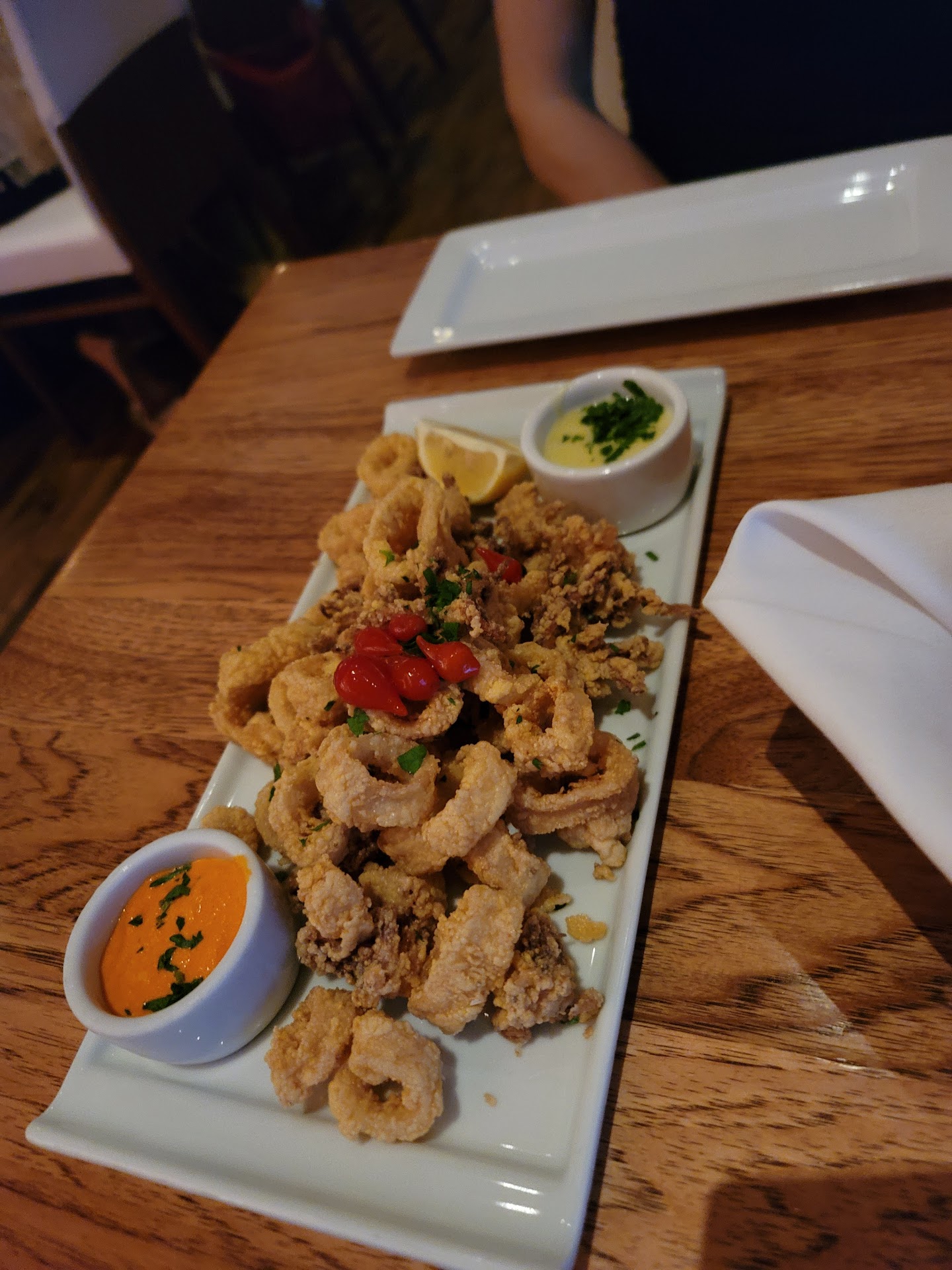 There are times in life when you need to stop and smell the roses. Remind yourself why you work so damn hard. This was one of those times for us and I am so glad we came here! Sitting next to an ocean view window, being treated to some excellent service with a genuine smile, eating some of the best food we have eaten, and with your better half, what more could you ask for! The menu contains a four course meal. For a starter we ordered pork belly, and the meatball. This set the tone for what was to come. Both were so good and could have been a main dish with a bigger portion size! Second course was the walnut beau cheese salad, and lobster bisque. Both incredible. Main course short braised ribs and the prime ribeye. The short braised rib was so flavorful and tender with an excellent sauce on the plate to mop up with each bite. The prime ribeye was one of the best steaks I have ever eaten. I am a steak eater and cooker(made that term up lol) and know what a good steak is supposed to taste like. This my friends is the way it's done! Pan fried to perfection. A nice crust with a tender middle. To add to the perfection, a roasted clover of garlic is served on top for you to spear over the meat. What an amazing, creative detail to get the garlic flavor onto a steak! Our sides were all beyond delicious, mashed potatoes, creamy spinach, asparagus(that were some of the thinest, most tender you can find. And the broccolini rounded out the amazing sides. Have to have to desert after a meal like this and they did not miss here either. Banana cream pie and cocunut cream pie. The Banana pie was good but my favorite was the cocunut cream pie. Served up looking just like a cocunt that had been cut in half! They create a choclate ball that is cut in half to resemble the outside of a cocunut, and then fill it with the cocunut cream pie filling! Tasted so good! A nice selection of wines are available and I am pretty sure you can order the whole bottle. The chef personally came to our table to check on everything. I could tell by the food, and his vibe that he took his cooking very seriously and has a lot of pride in what he does! You can truly taste this in every bite. Margaritaville you have an absolute winner in your chef and I hope you take care of him well! 3 days left and we are already thinking we have to go again to try other items on thr menu! Don't forget to purchase this prior to leaving, as it is alot cheaper than booking and paying while at sea. THANK YOU CHEF AND EVERYONE AT...