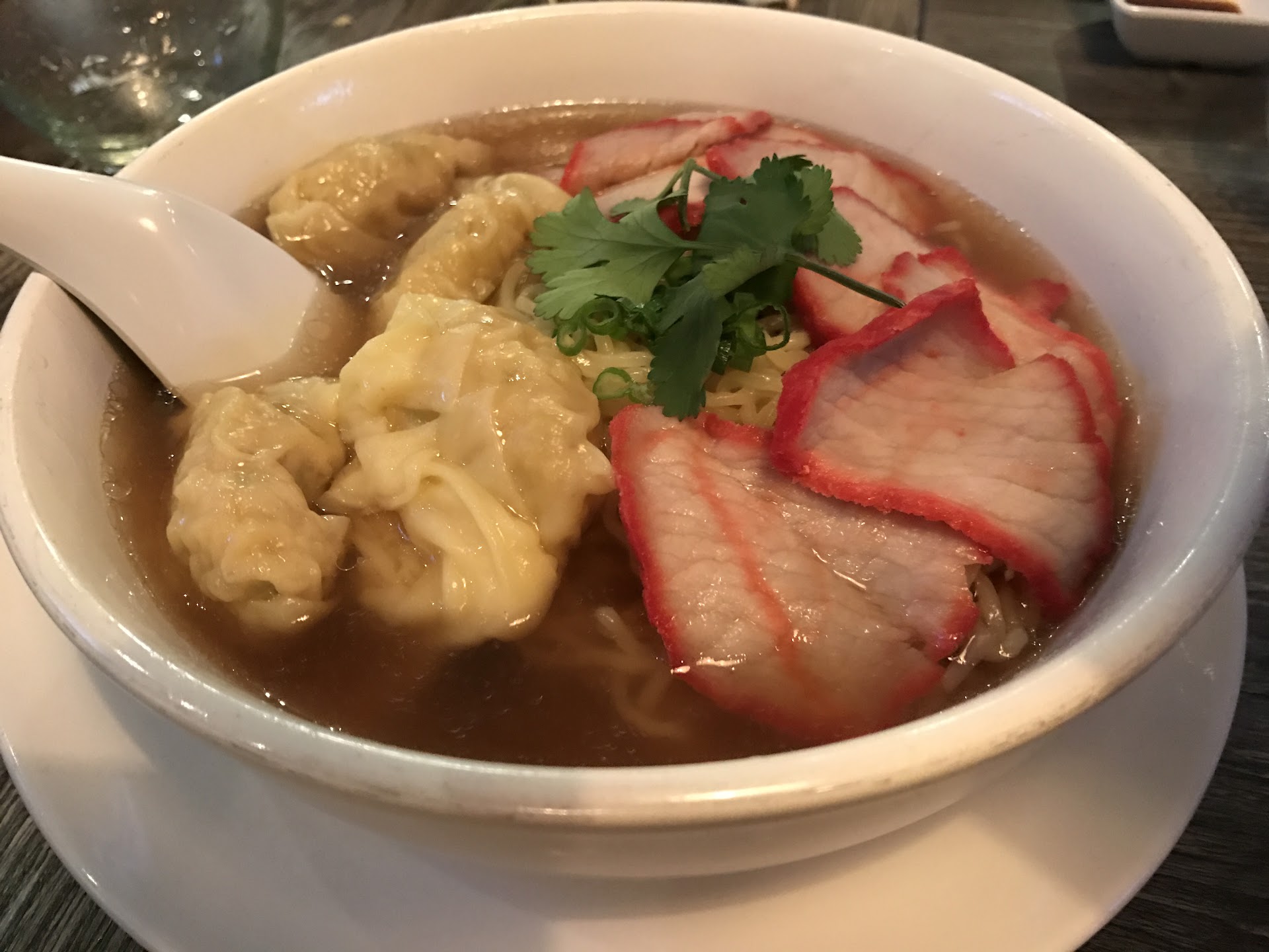 We tasted the Ramen with Wonton, not expecting much since we are Cantonese, and we KNOW WONTON. the wonton on top used pork filling, which adds flavor, I generally like better than only shrimp wonton. but they should really mixed shrimp and pork, this pork wonton is a big too firm on the bite. roast pork slice is such bright red that you know it is coloring. For those who doesn't know, the Chinese roast pork (Char Siu) has a deep BBQ red color and honey dripping sweet sauce. the deep red color came from roasting and the sweet marinate. not a single drop of coloring should be used, but in US, many kitchen just do not know how to roast it to such color perfection and they resorts to the use of food coloring.